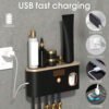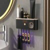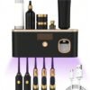 1 Esterilizador de cepillo de dientes inteligente, soporte de pared para cepillo de dientes con dispensador de pasta de dientes, soporte para cepillo de dientes y dispositivo de desinfección, estante de almacenamiento de cepillo de dientes, estante de almacenamiento de cepillo de dientes con 5 ranuras para cepillos, accesorios de baño, decoración del hogar de vuelta a la escuela