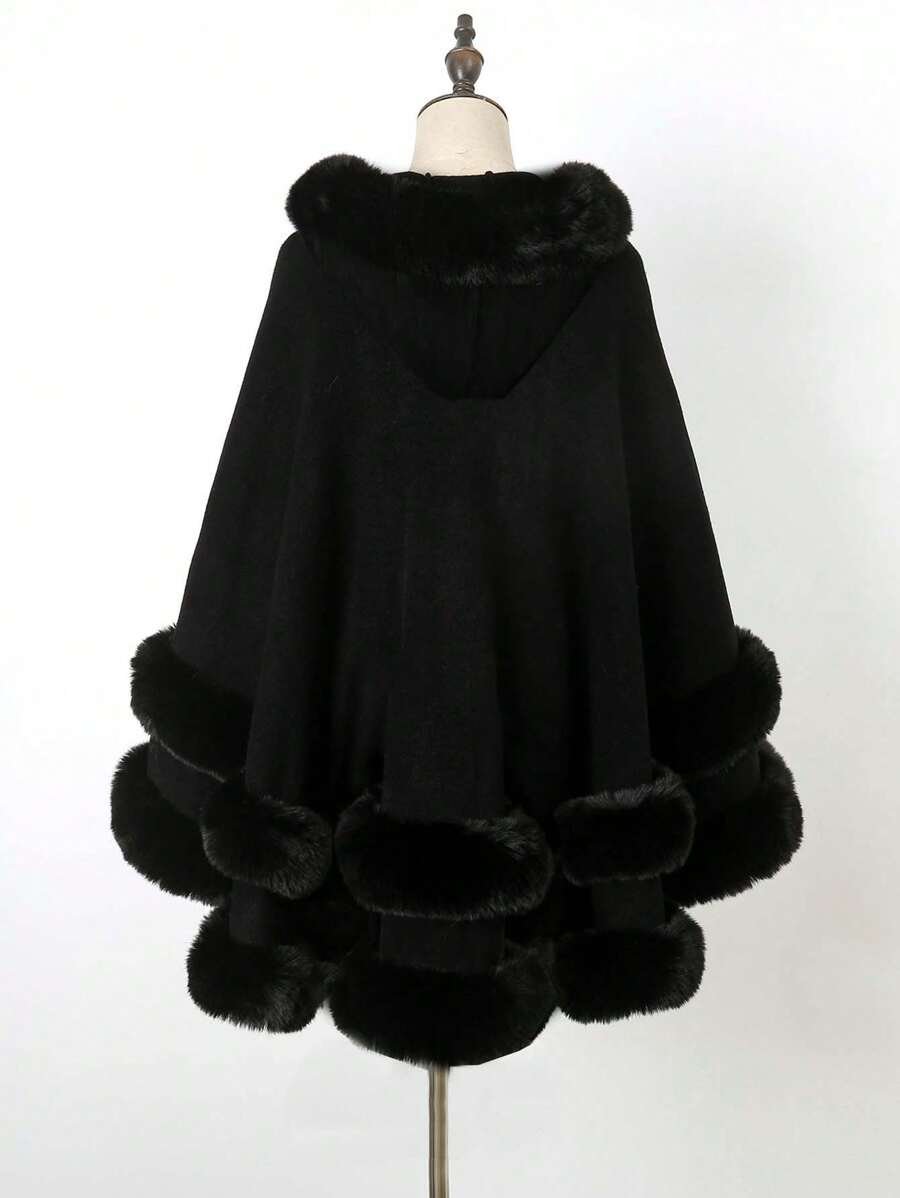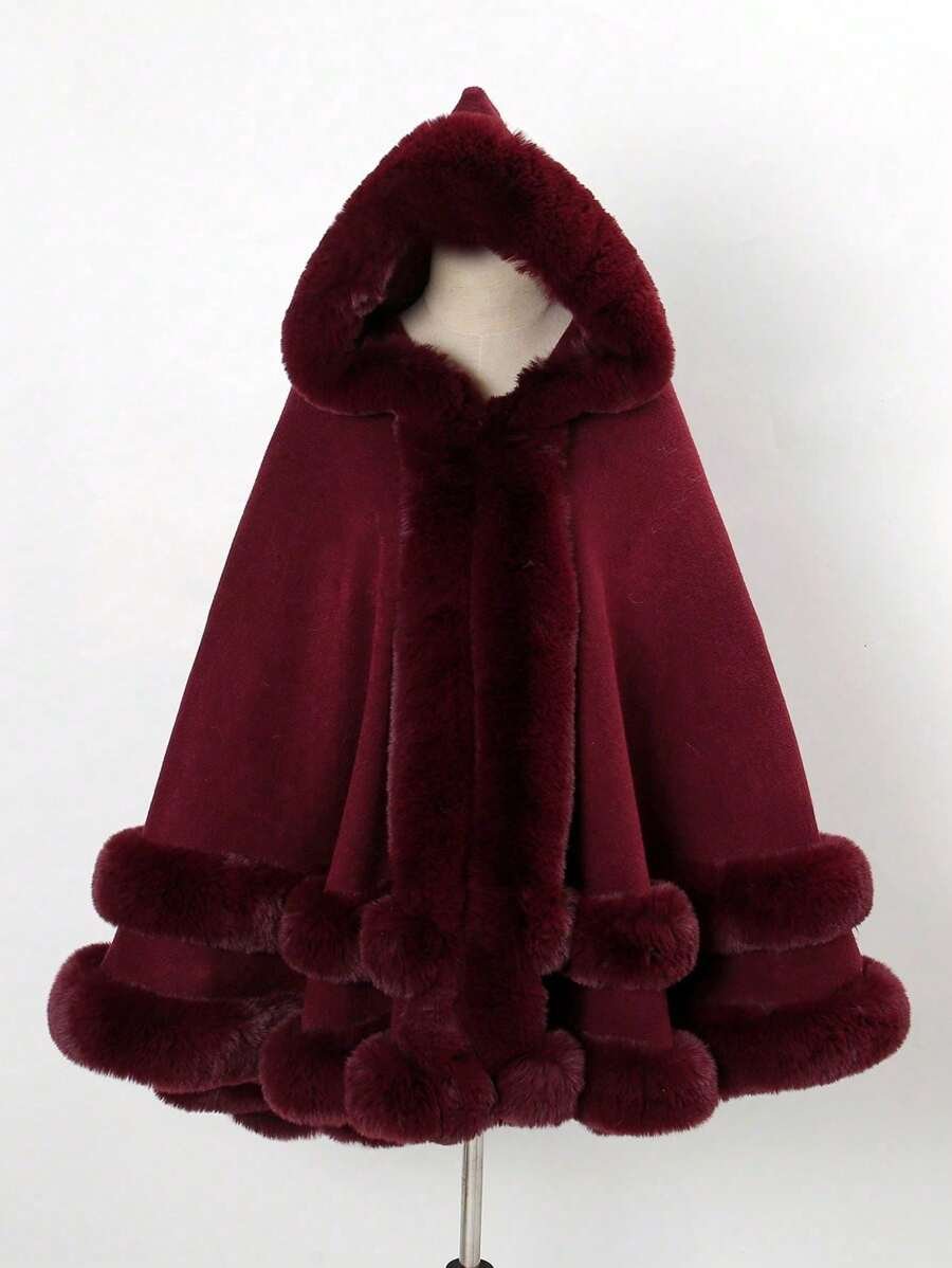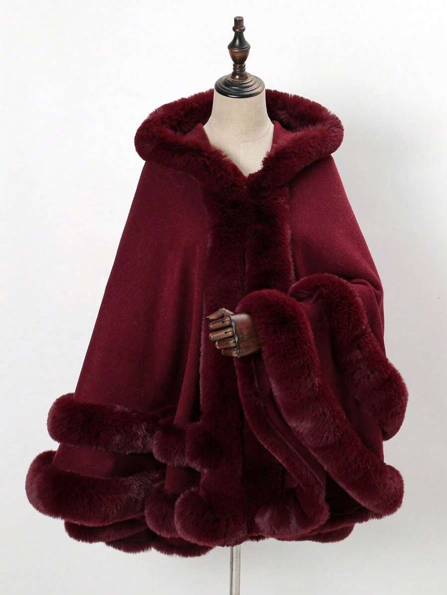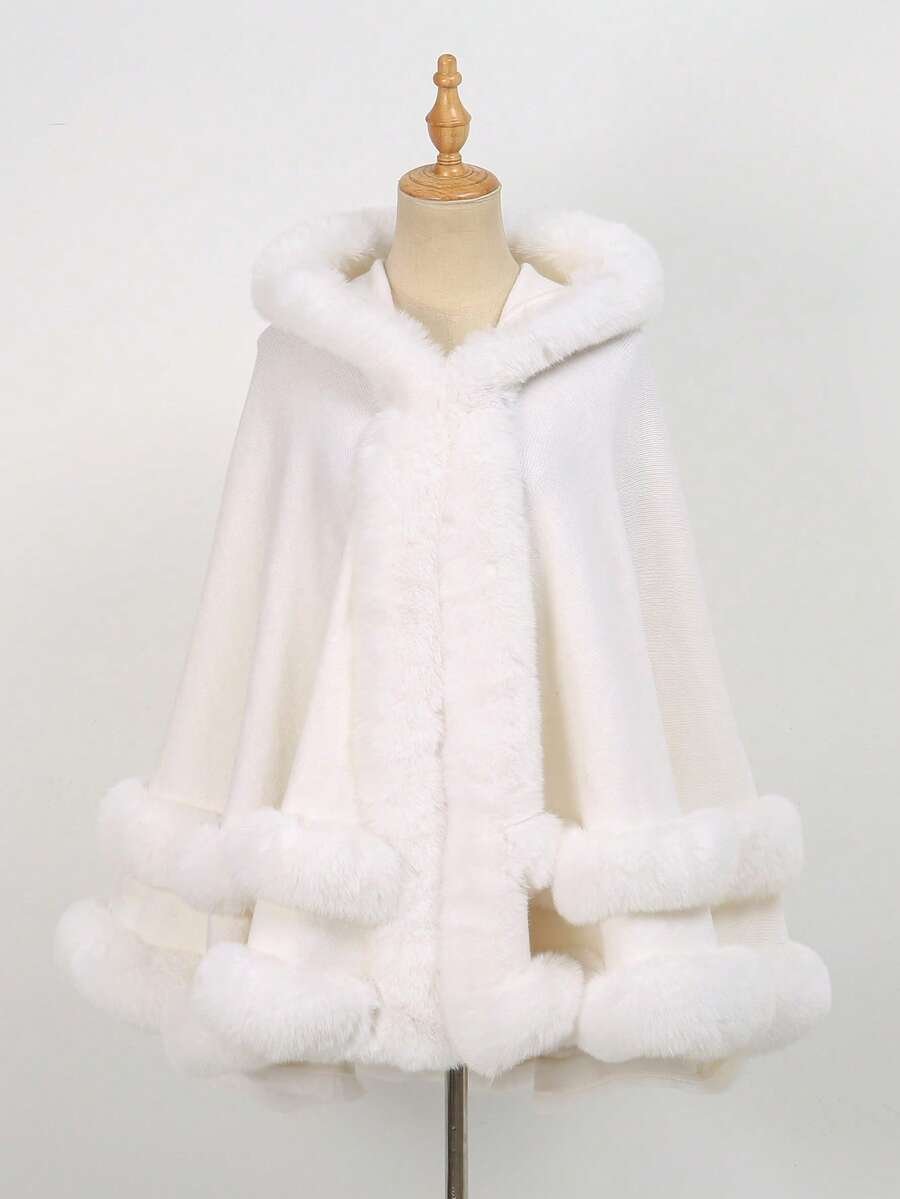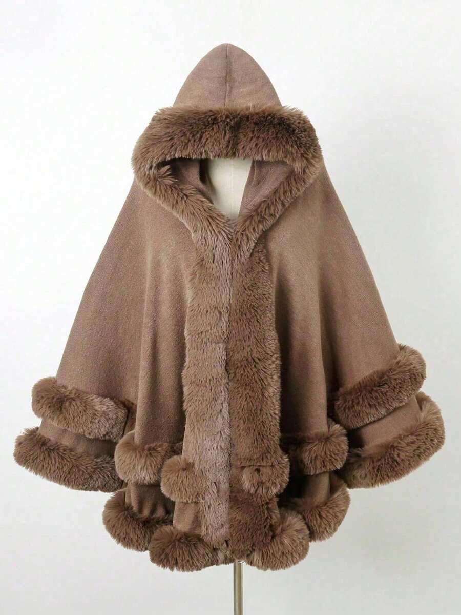 1 pieza Chal con capucha de piel sintética de doble capa de unicolor