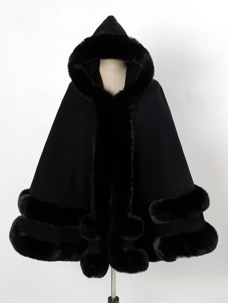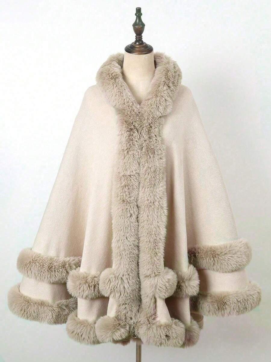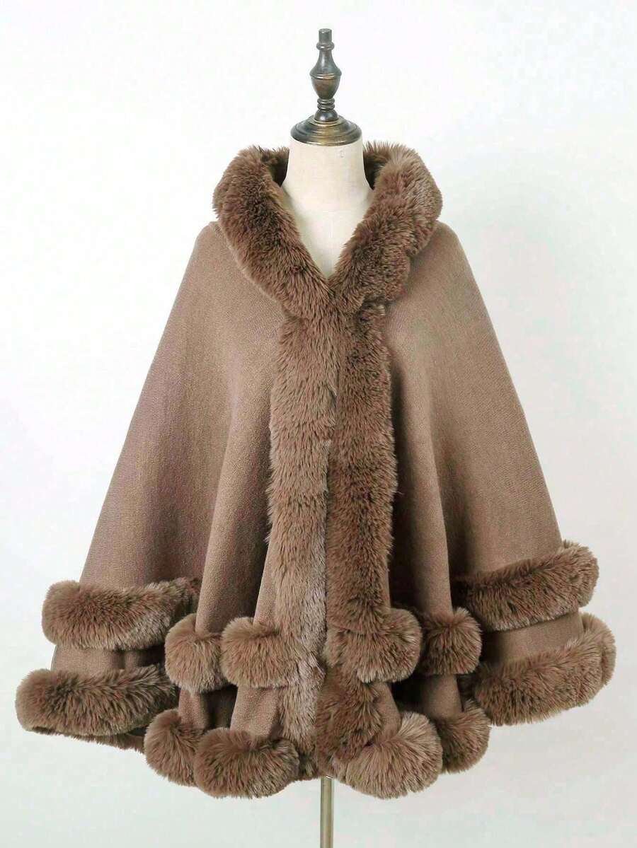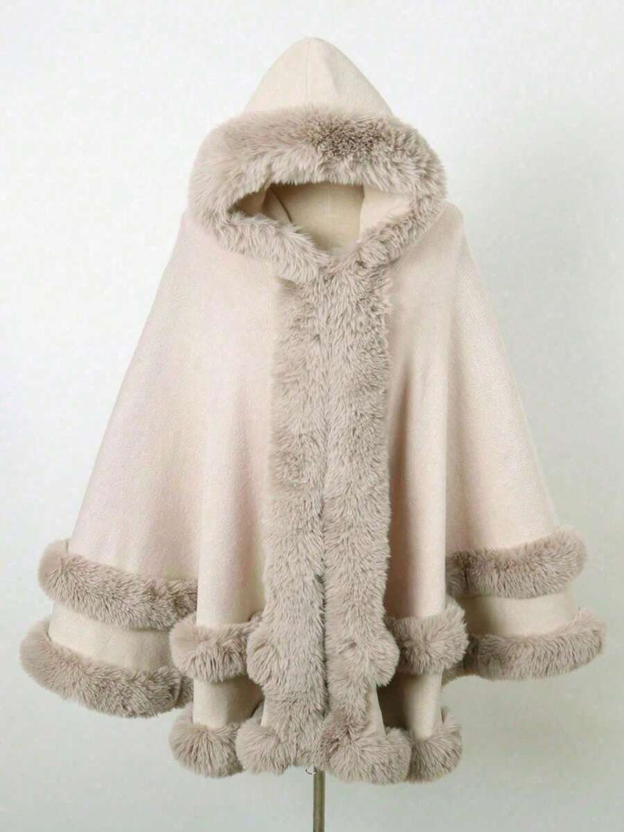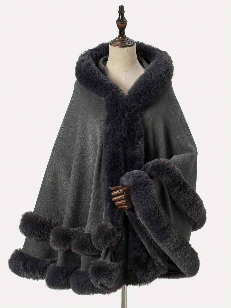 1 pieza Chal con capucha de piel sintética de doble capa de unicolor