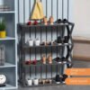 1 PIEZA Estantería plegable de plástico de 4 niveles, organizador de almacenamiento de zapatos reforzado y grueso, estantería de zapatos multinivel ahorradora de espacio, tubo de acero en forma de X resistente y a prueba de polvo, fácil de montar, gabinete de zapatos para entradas, pasillos, dormitorios, dormitorios, apartamentos, armarios, diseño antideslizante, organizador de zapatos compacto para espacios pequeños, ideal para mujeres, hombres, estudiantes universitarios, familias numerosas, inquilinos, perfecto para regalos de Navidad, decoración del hogar de Año Nuevo
