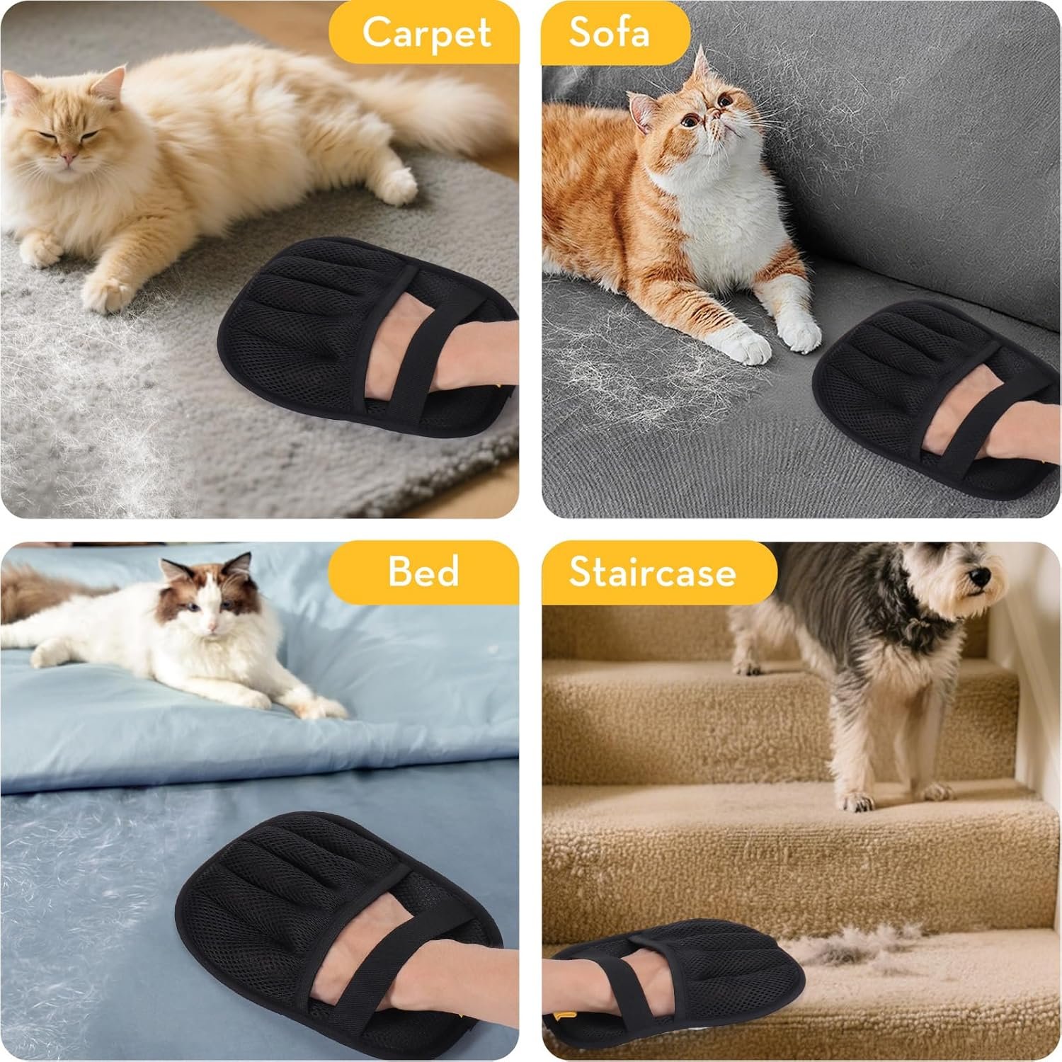 - Suave con telas suaves y mascotas: Hecho de tela suave y flexible, el guante de depilación de mascotas es suave tanto para mascotas como para tus muebles. Elimina fácil y eficazmente el vello de tu sofá, sábanas e incluso camisetas, sin el riesgo de rayar o dañar telas delicadas. Puedes limpiar tu hogar con tranquilidad, sabiendo que tus muebles y mascotas estarán seguros, todo mientras mantienes tu espacio libre de pelo de mascotas no deseado