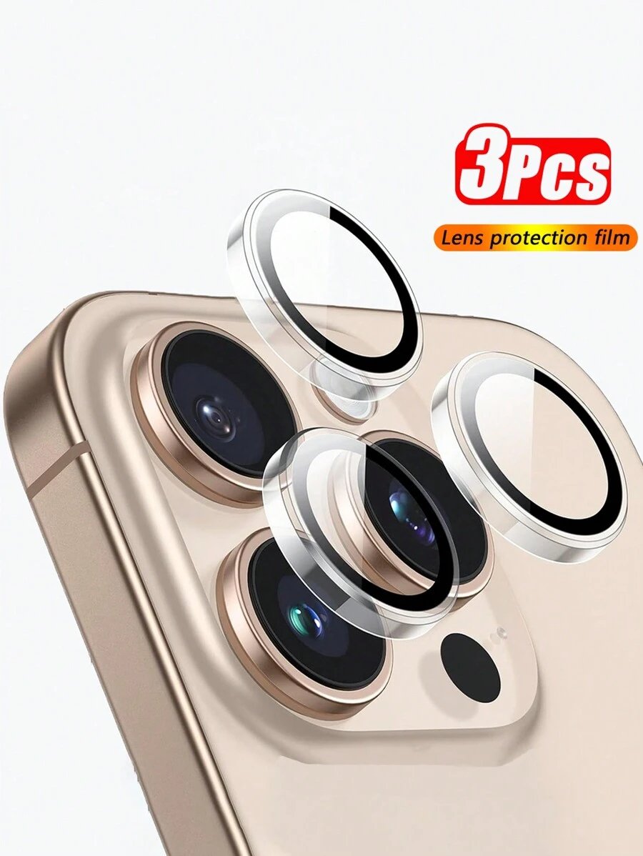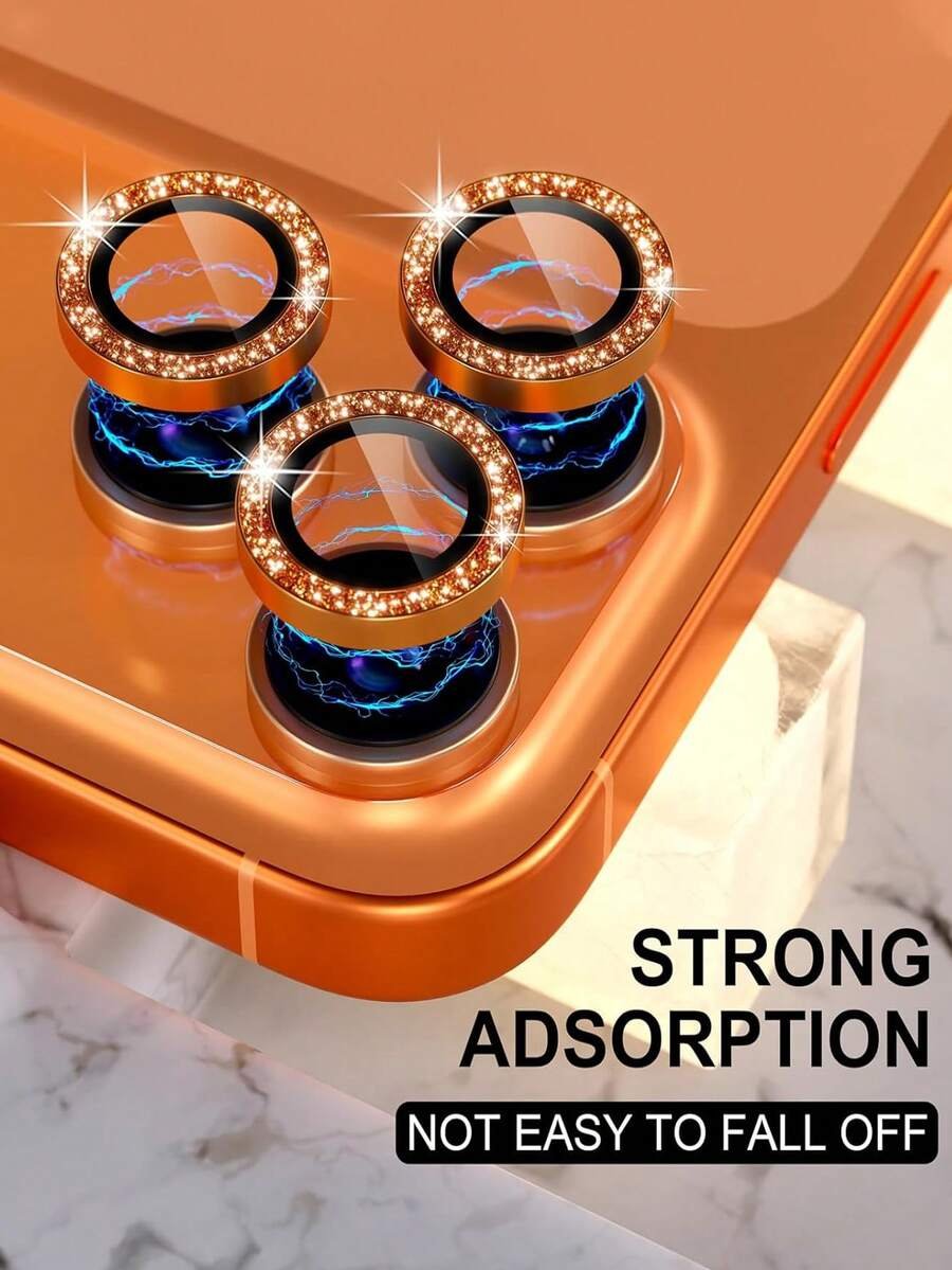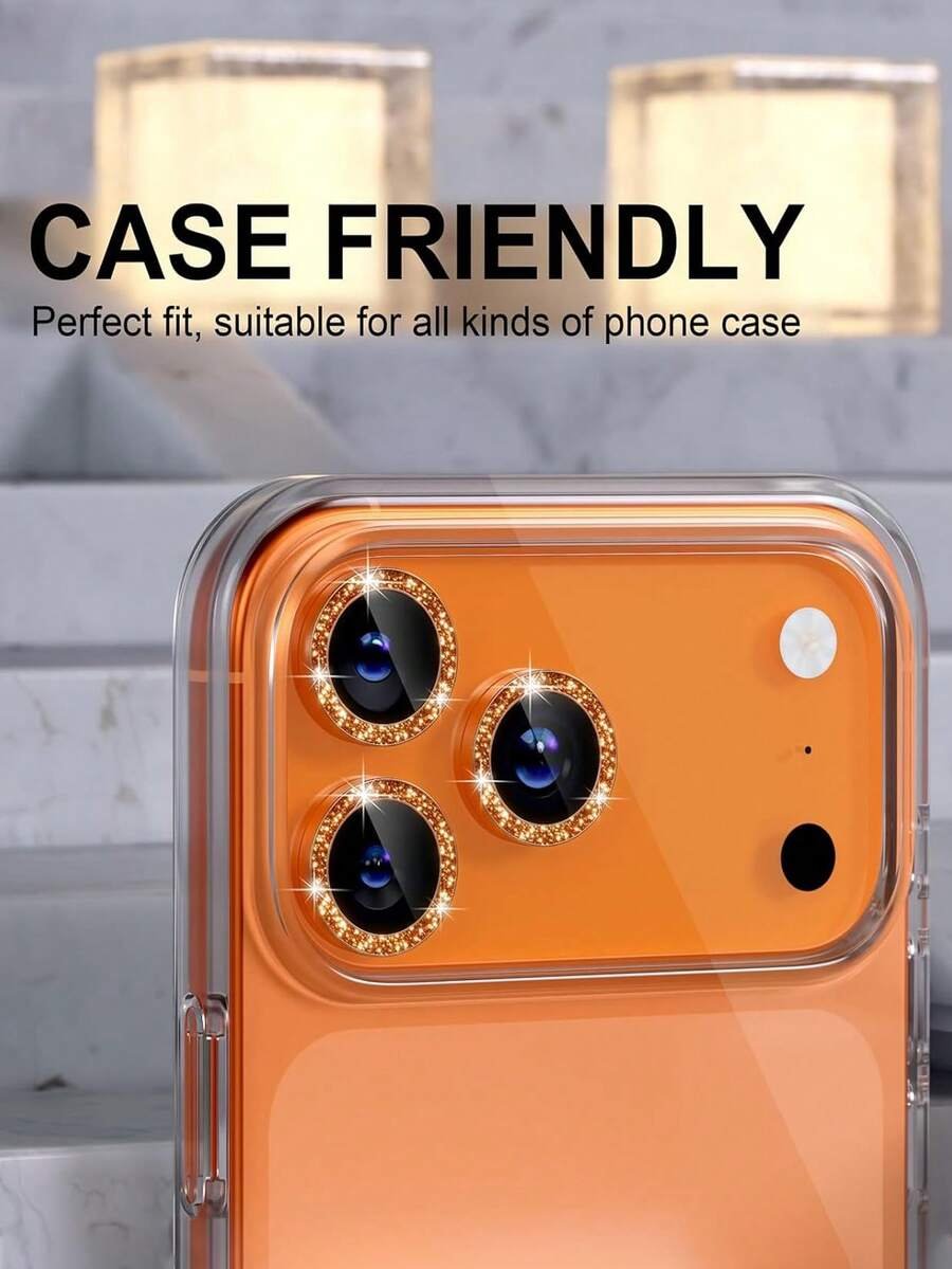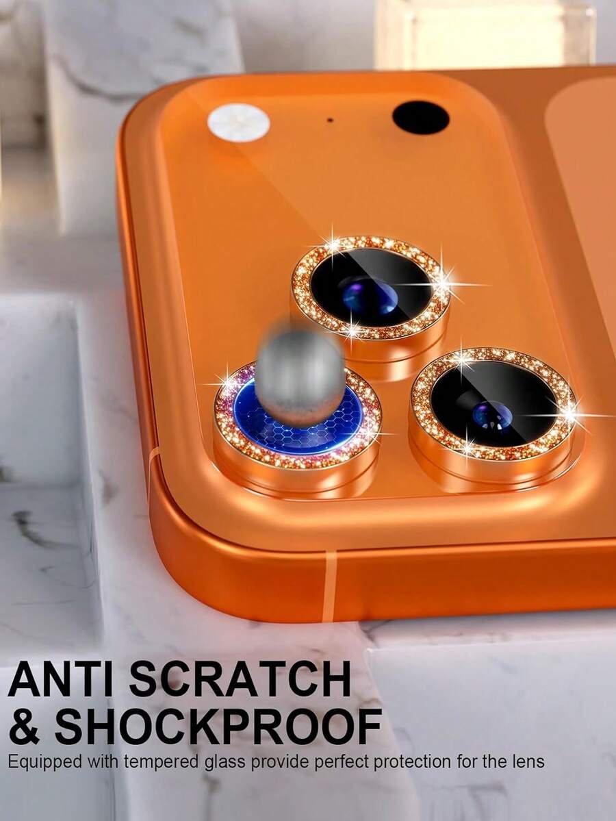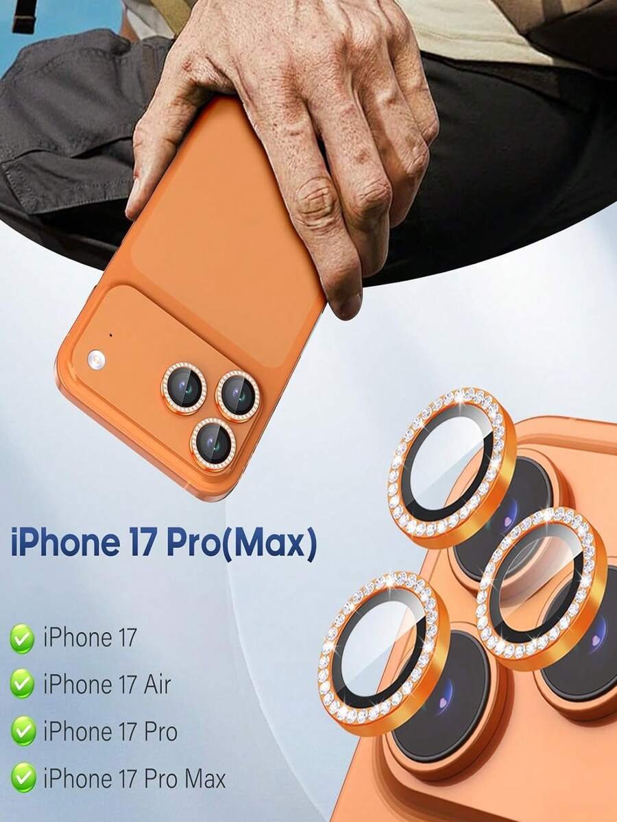 3 piezas Película protectora de lente de cámara para iPhone 17/17 Pro/17 Pro Max/Pro/Promax, Protector de pantalla de vidrio templado 9H con anillo de metal decorativo accesorio (Naranja brillante)
