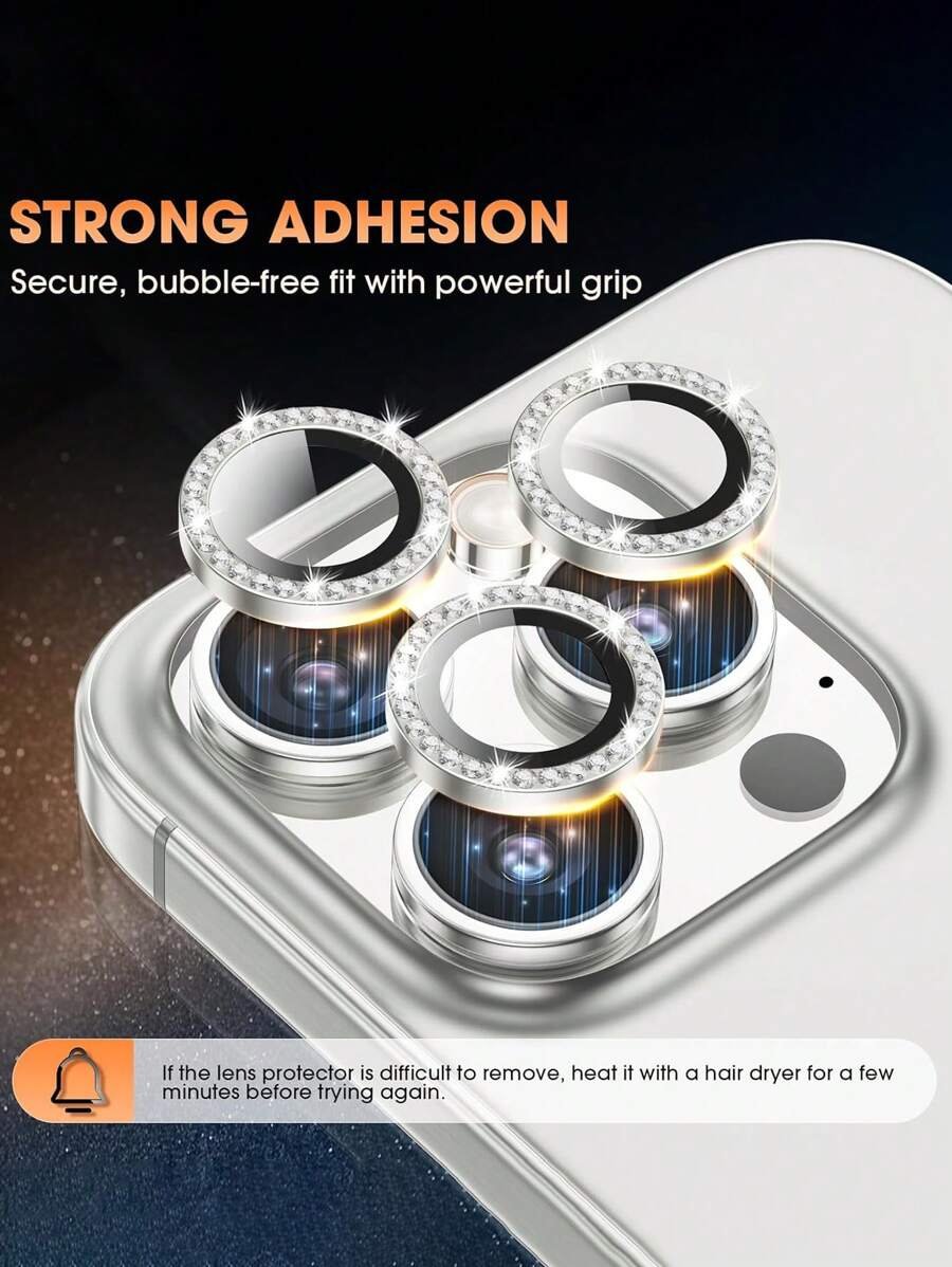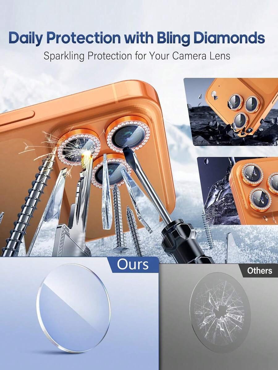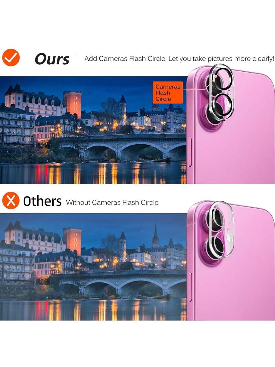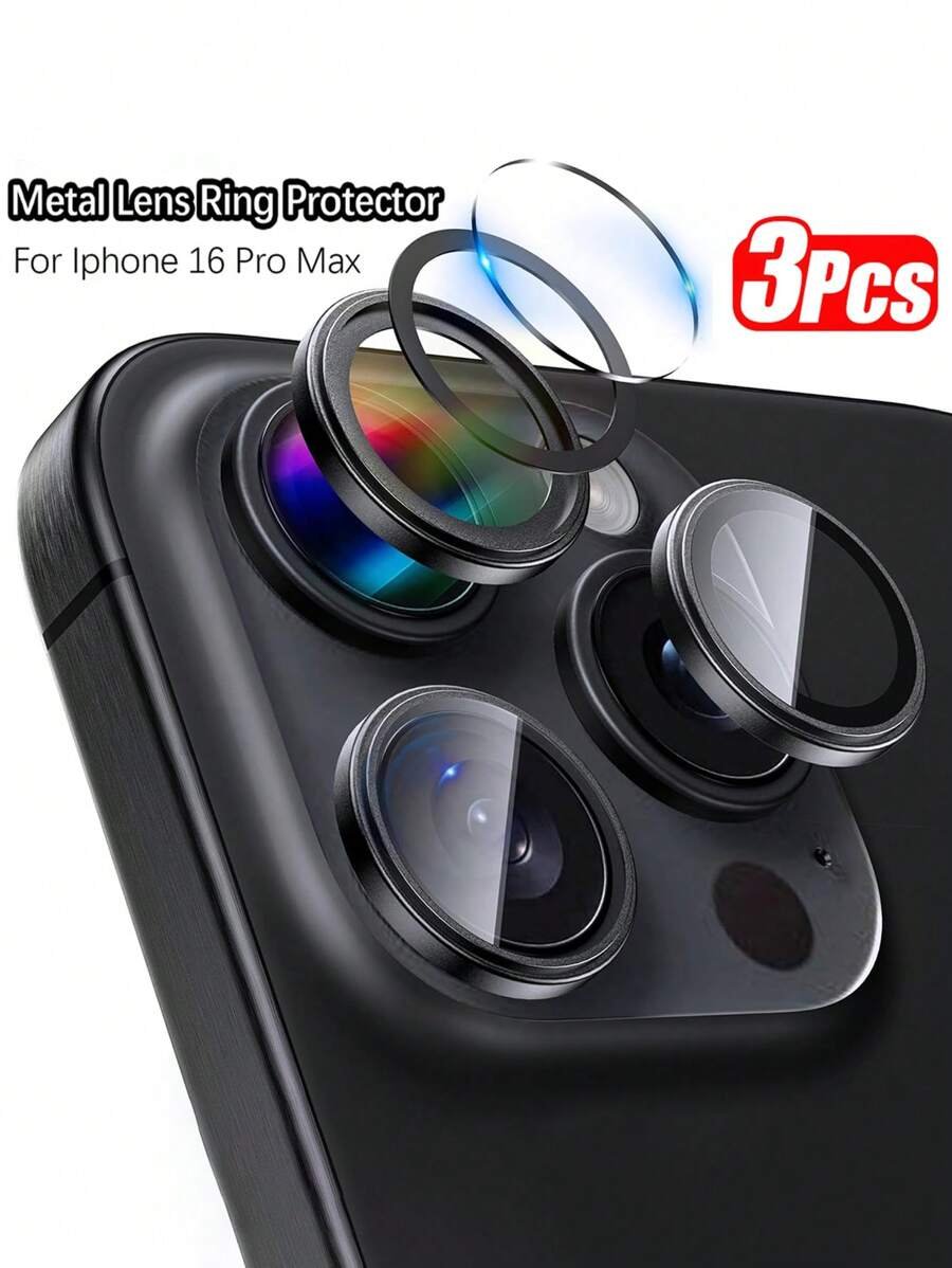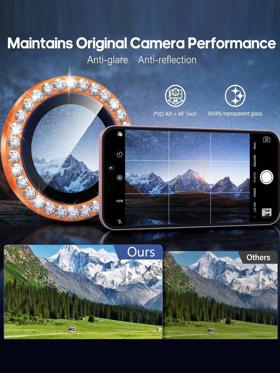 3 piezas Película protectora de lente de cámara para iPhone 17/17 Pro/17 Pro Max/Pro/Promax, Protector de pantalla de vidrio templado 9H con anillo de metal decorativo accesorio (Naranja brillante)