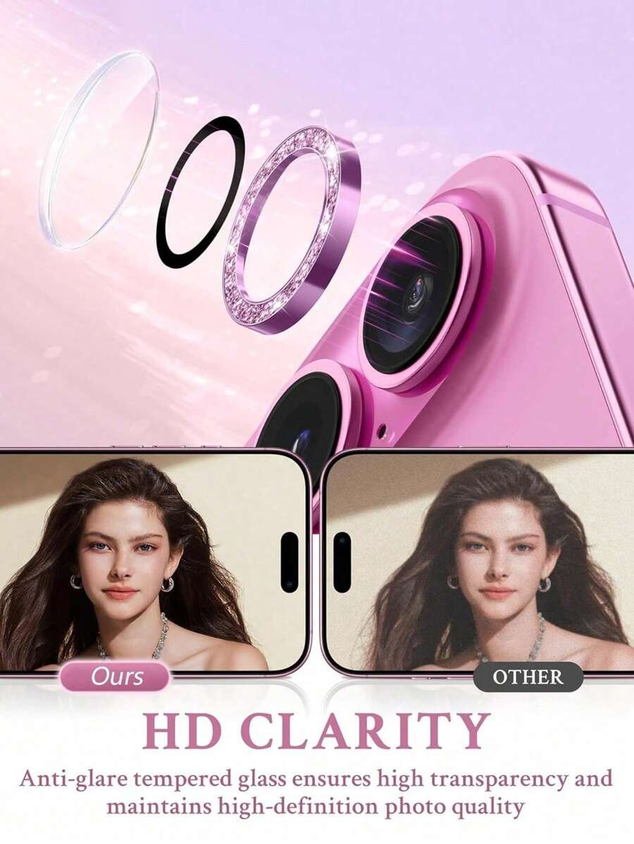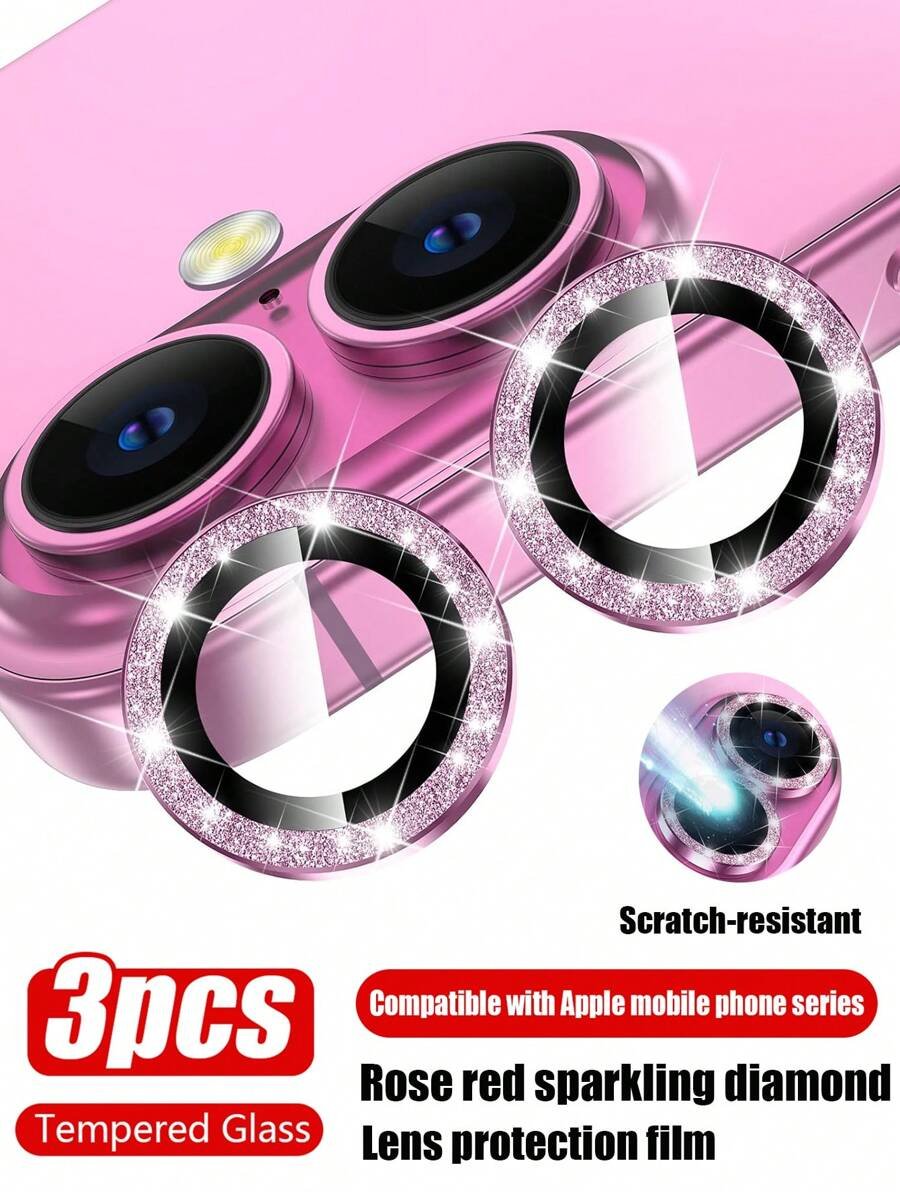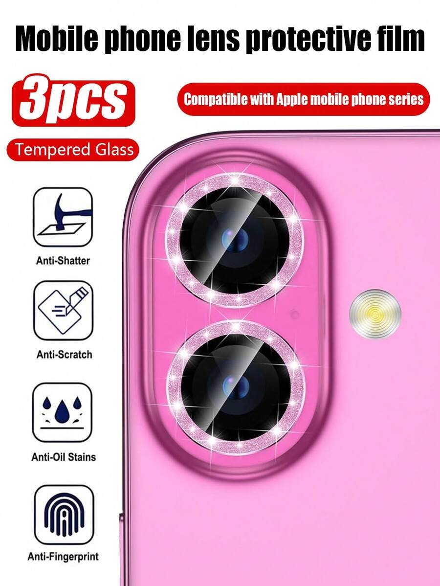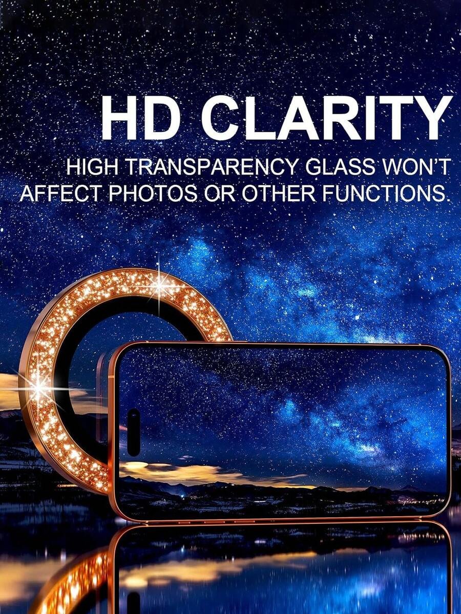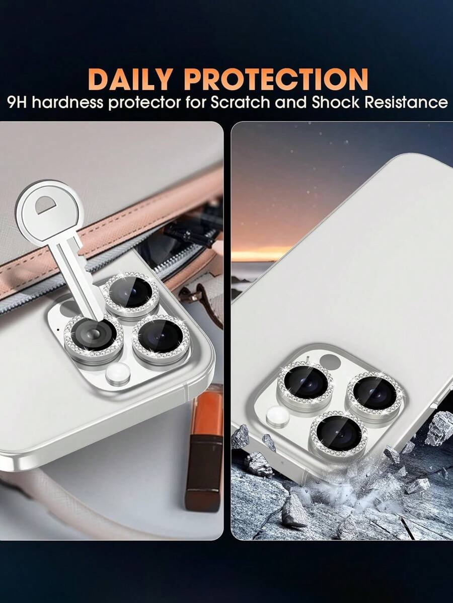 3 piezas Película protectora de lente de cámara para iPhone 17/17 Pro/17 Pro Max/Pro/Promax, Protector de pantalla de vidrio templado 9H con anillo de metal decorativo accesorio (Naranja brillante)