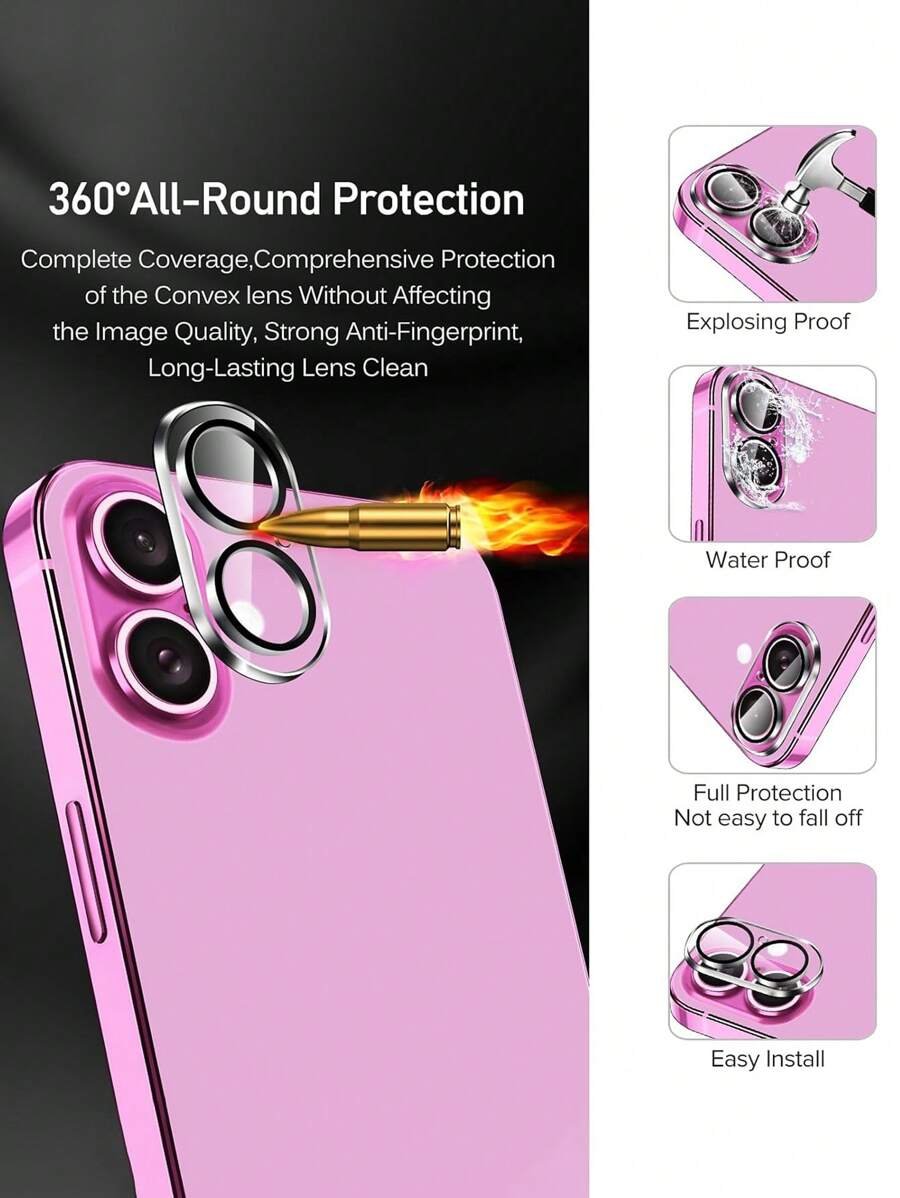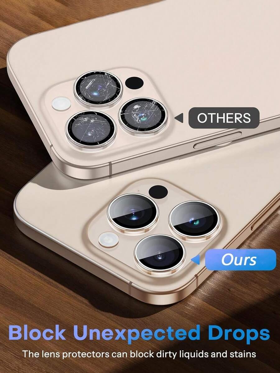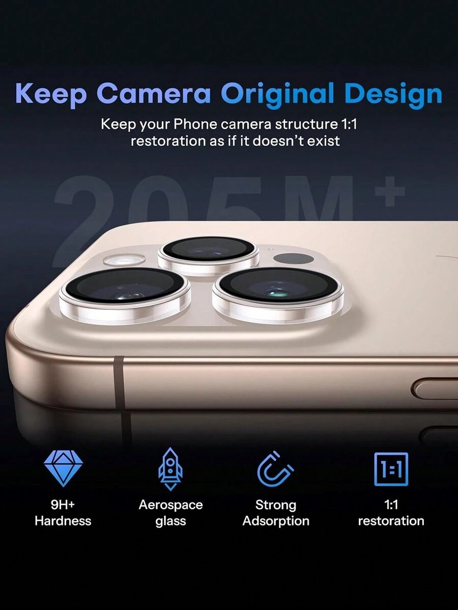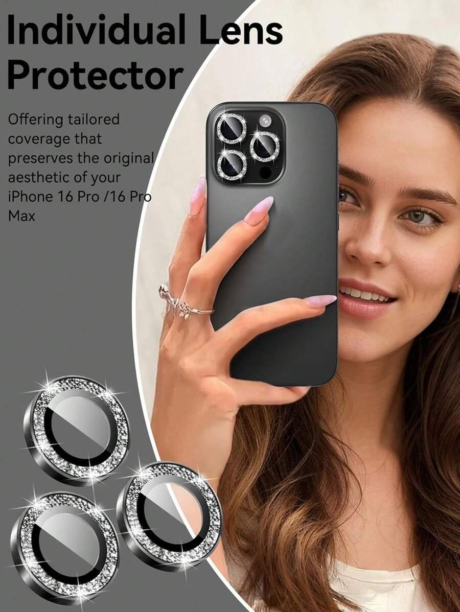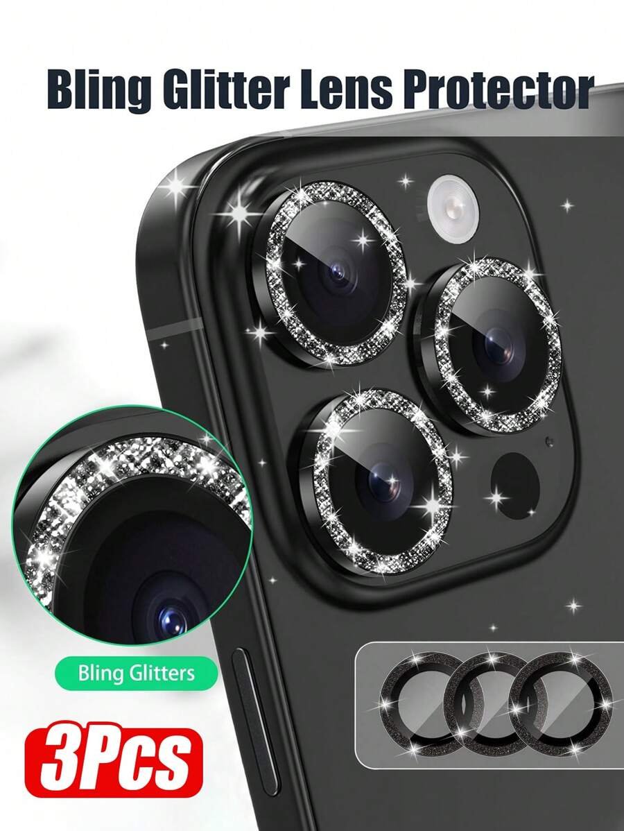 3 piezas Película protectora de lente de cámara para iPhone 17/17 Pro/17 Pro Max/Pro/Promax, Protector de pantalla de vidrio templado 9H con anillo de metal decorativo accesorio (Naranja brillante)