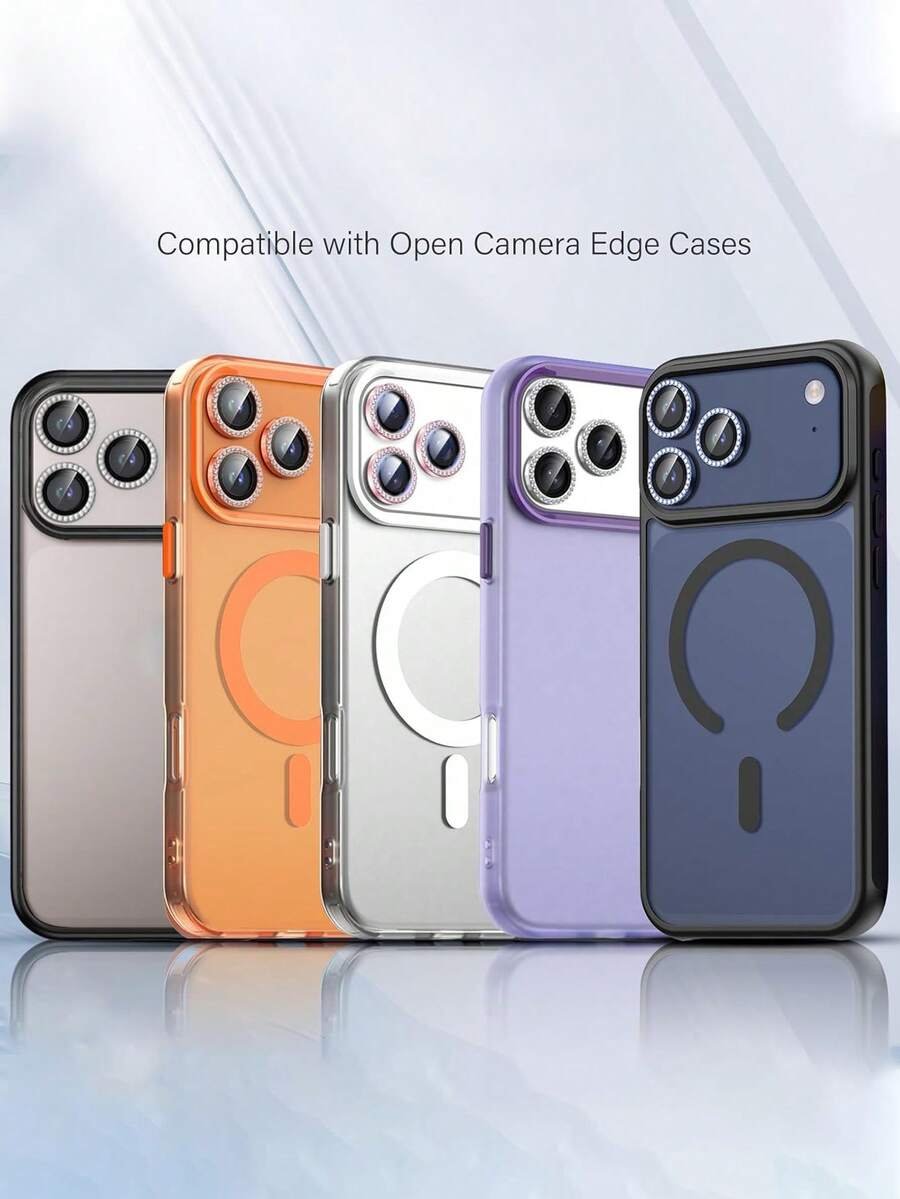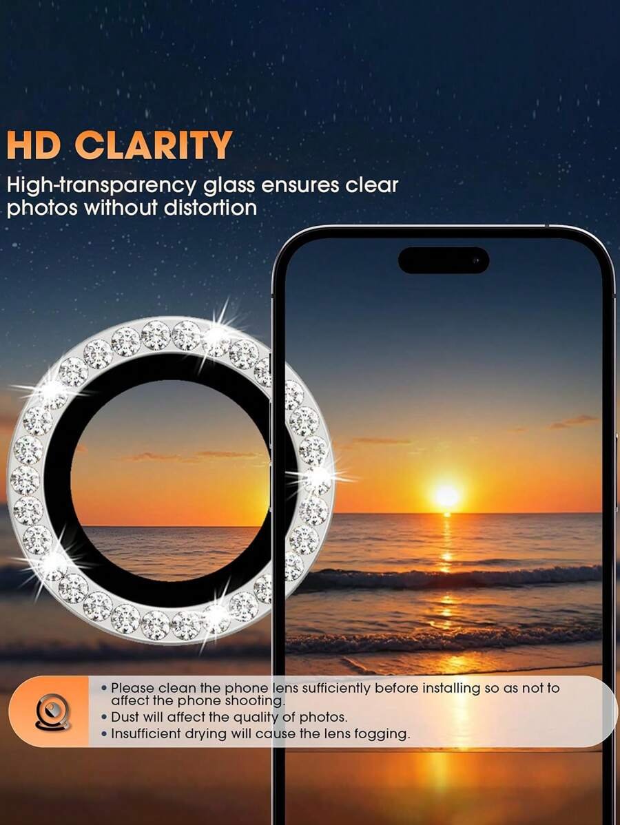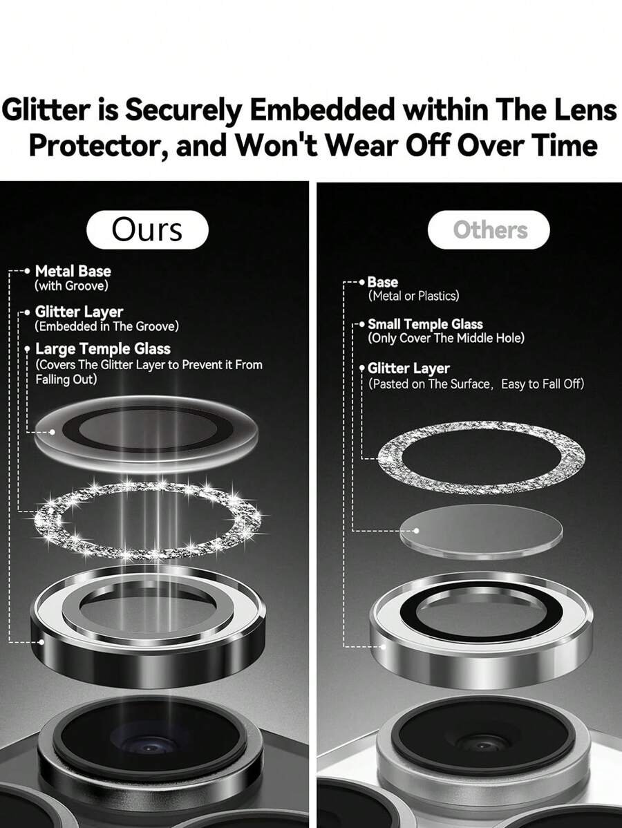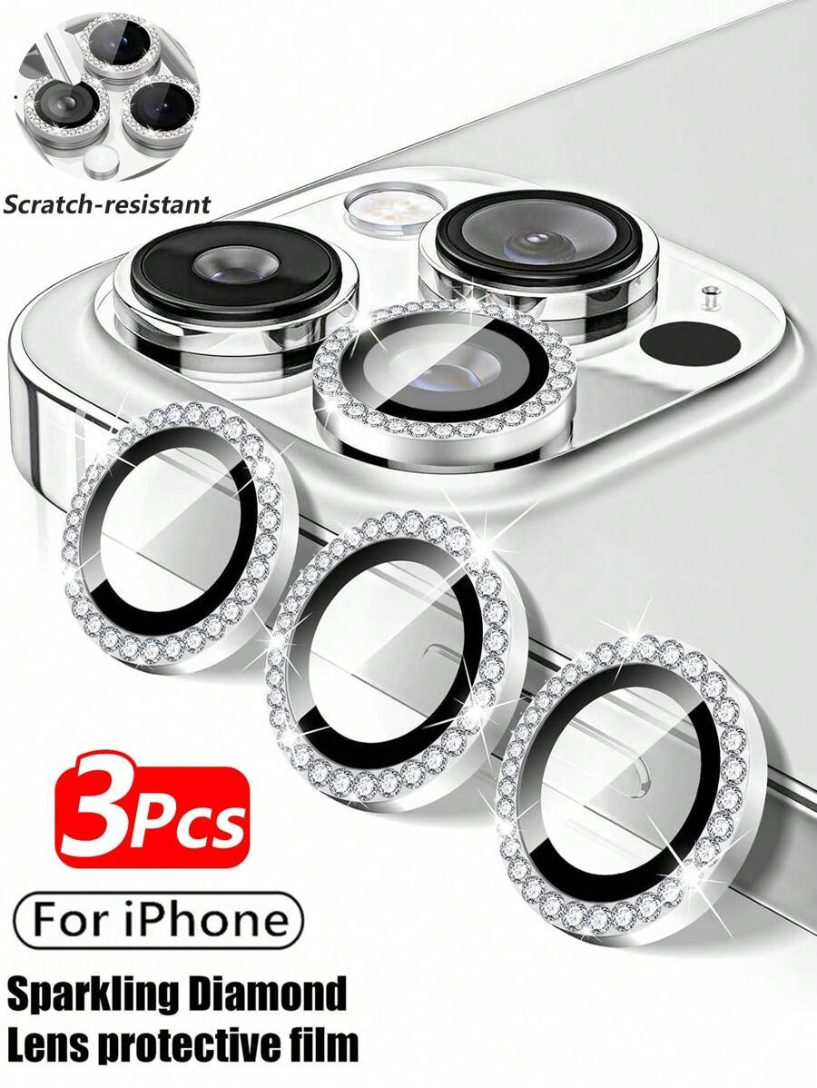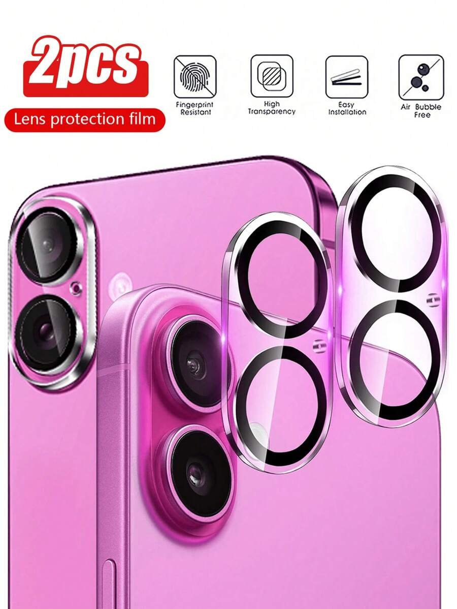 3 piezas Película protectora de lente de cámara para iPhone 17/17 Pro/17 Pro Max/Pro/Promax, Protector de pantalla de vidrio templado 9H con anillo de metal decorativo accesorio (Naranja brillante)