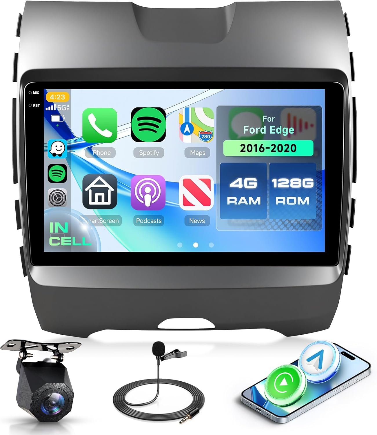 4+128G Android 15 Radio estéreo para coche para Ford Edge 2016-2020 con Carplay inalámbrico Android Auto, unidad principal de pantalla en celda de 9 pulgadas con GPS/Bluetooth 5.0/FM RDS/EQ/Wi-Fi