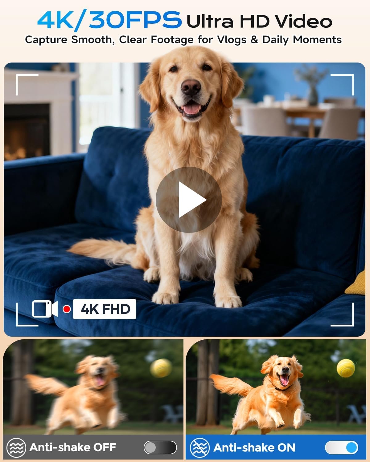 - 【360°Dial for Quick Creative Modes】This 4K photo & vlogging camera features a smooth 360° rotating mode dial for quick mode switching. Access Camera Settings, Image Capture, Video Recording, Self Timer, Motion Detection, Slow Motion, Smile Capture, and Continuous Shooting with ease. Ideal for beginners, teen creators, and experienced photographers, its intuitive layout keeps every function within reach so you can stay focused on creating.