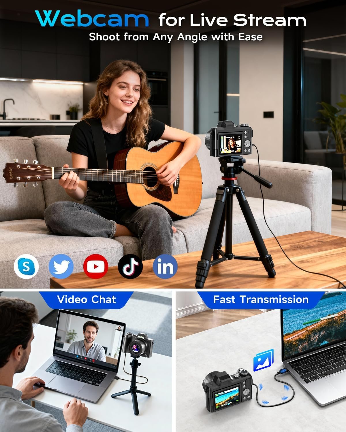 - 【USB Transfer & Webcam/Vlogging Function】 This upgraded 4K Best digital camera supports fast USB data transfer, making it easy to move videos and photos directly to your computer for editing or sharing. It also functions as a high-quality webcam—simply connect via USB and switch to PC Webcam mode to enjoy clearer video for live streaming, online meetings, or real-time vlogging on platforms. The included USB cable supports both charging and file transfer for added convenience.