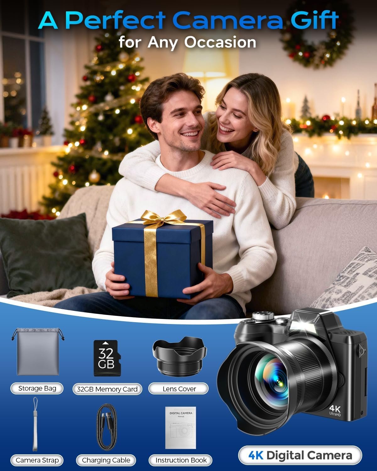 - 【Perfect Gift for Any Occasion】 Easy to use and designed to inspire creativity, this 4K camera digital makes a wonderful gift for family, friends, teens, or anyone excited to start creating. It’s ideal for birthdays, holidays, anniversaries, or special moments such as Thanksgiving and Christmas, offering a thoughtful and memorable experience. Recognized as the best camera for content creators, this camera is truly the top choice for anyone looking to produce high-quality content with ease.