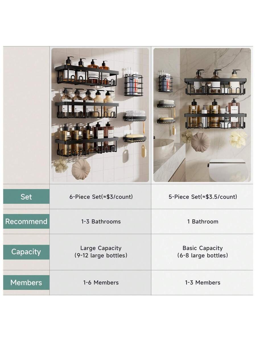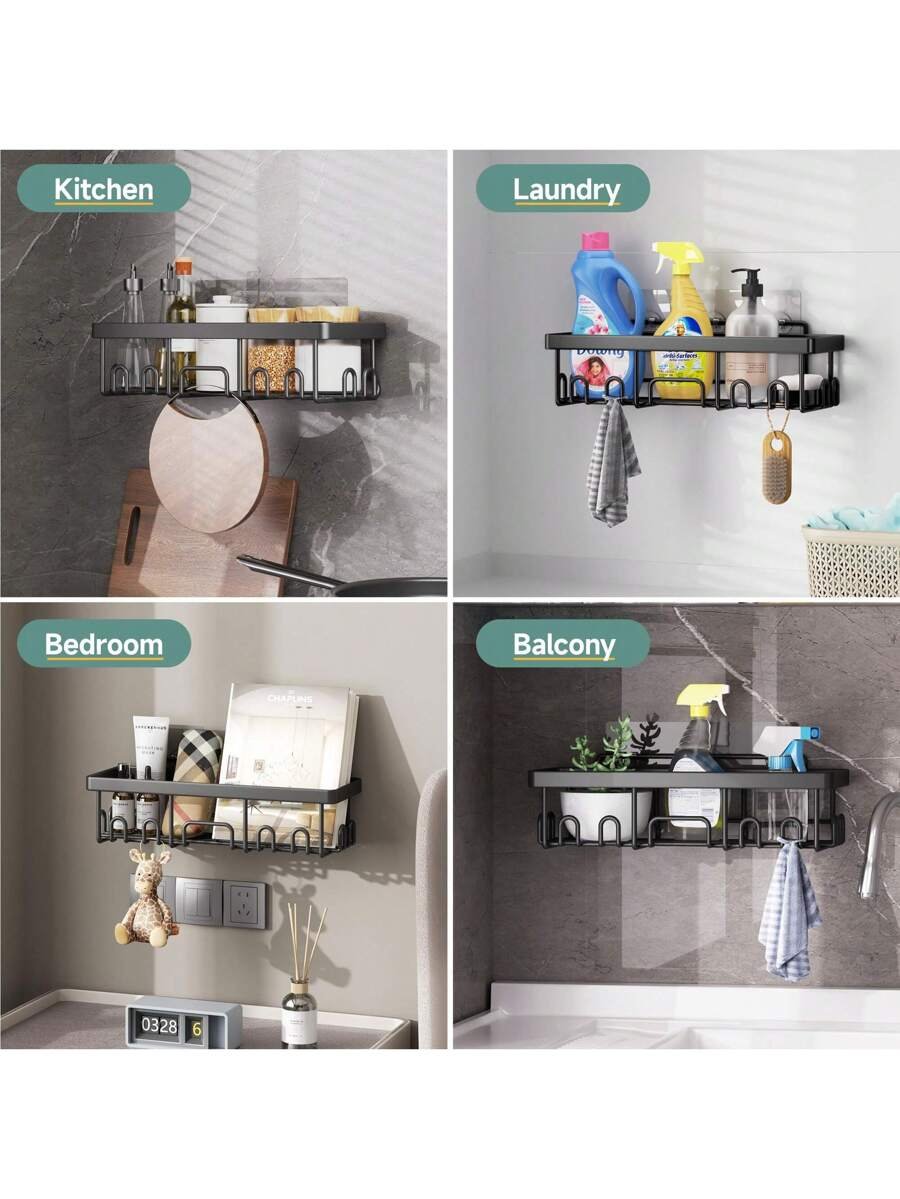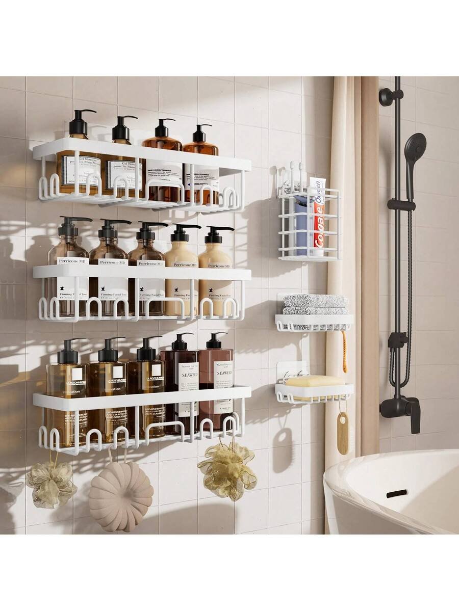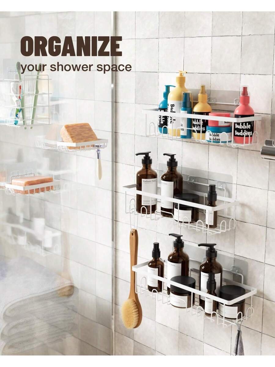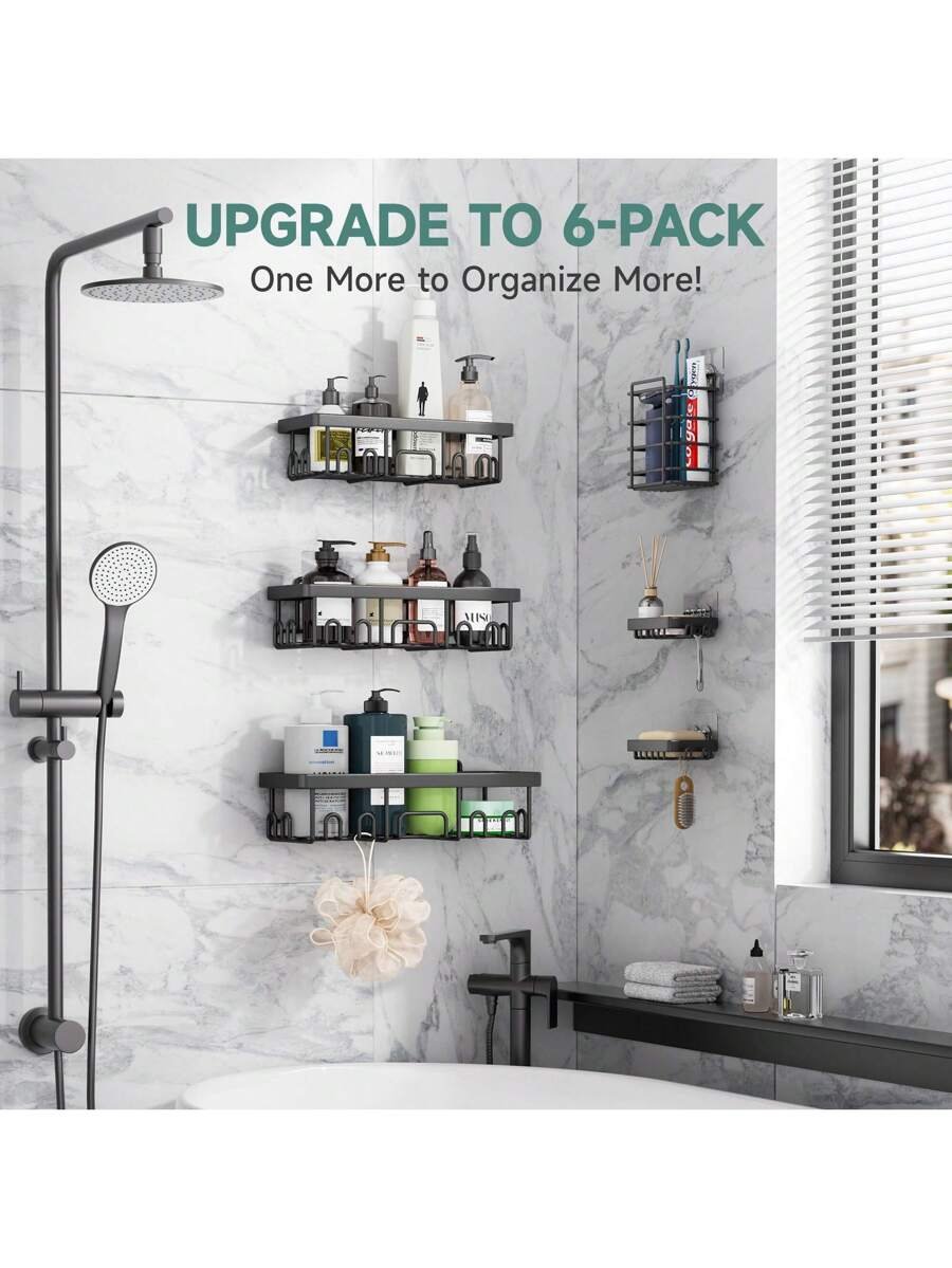 6 Uds. – Cesta de ducha, organizadores de baño, estantes de ducha negros para dentro de la ducha, estantería de pared de acero inoxidable con cestas adheridas, productos de vuelta al colegio
