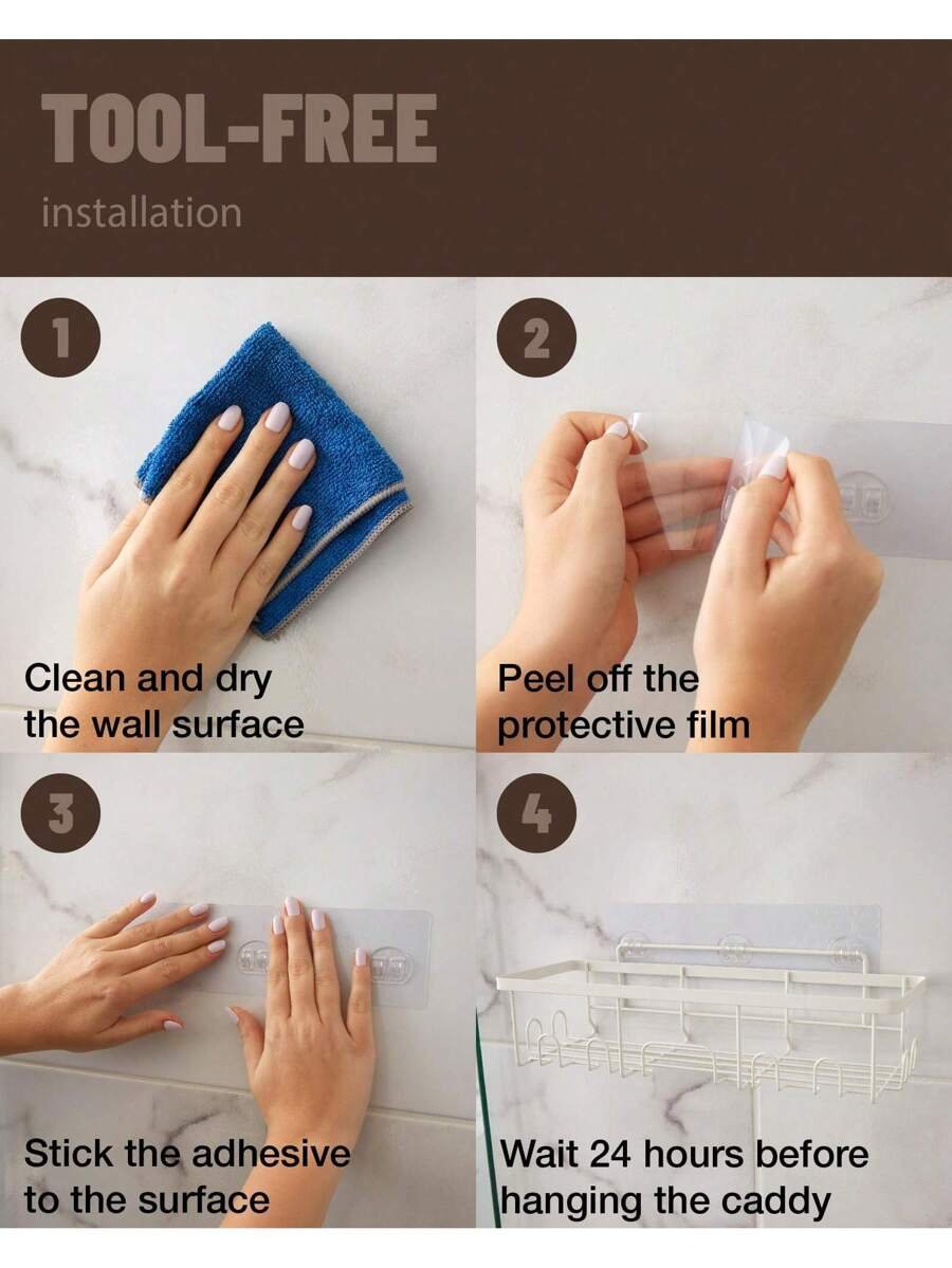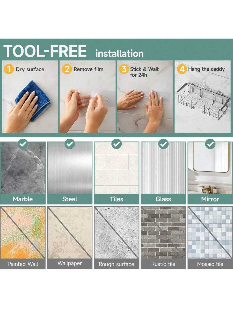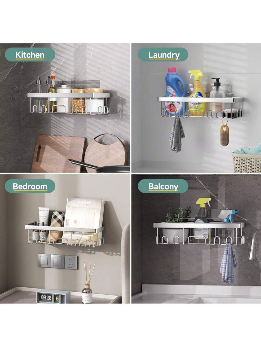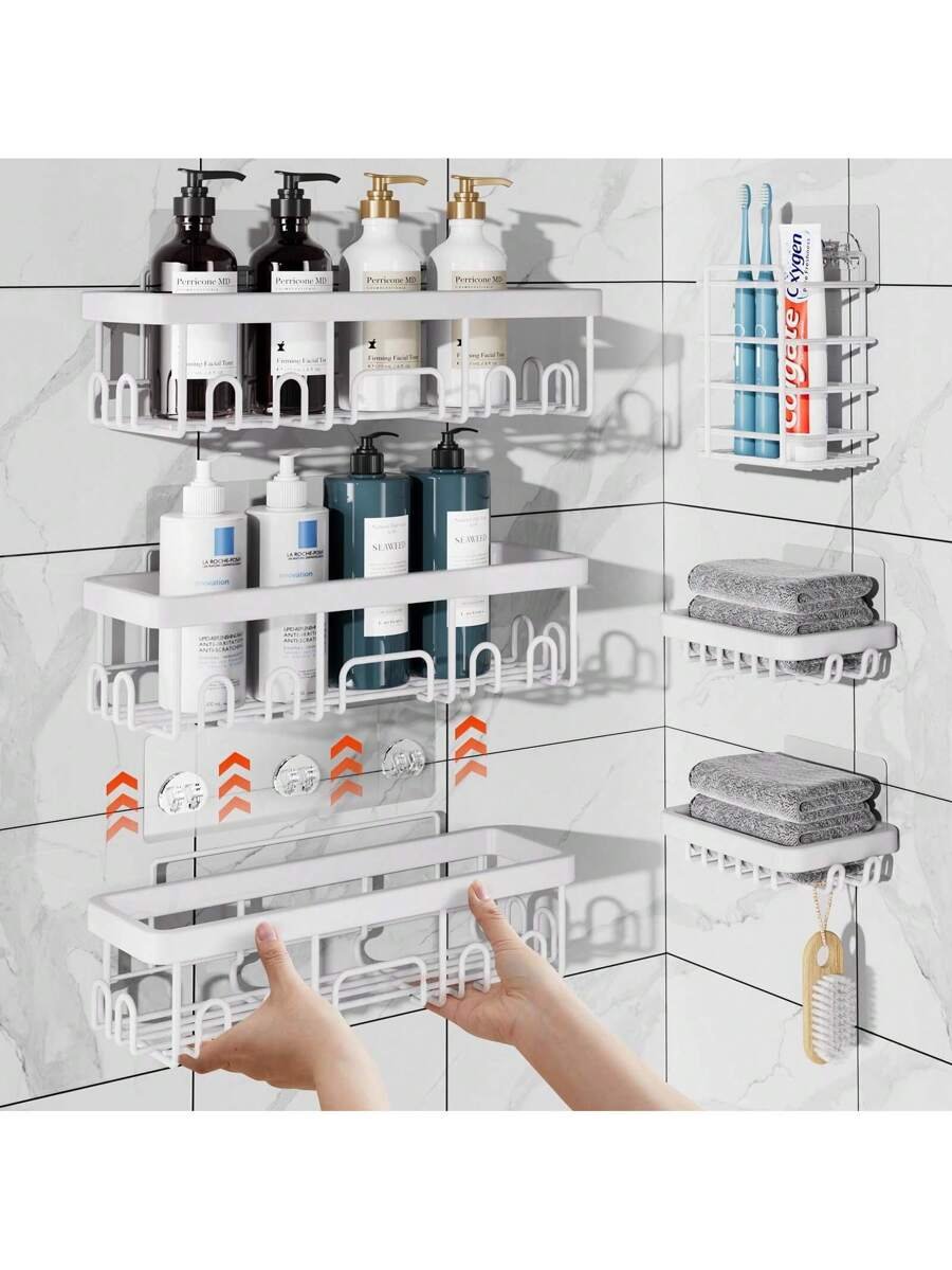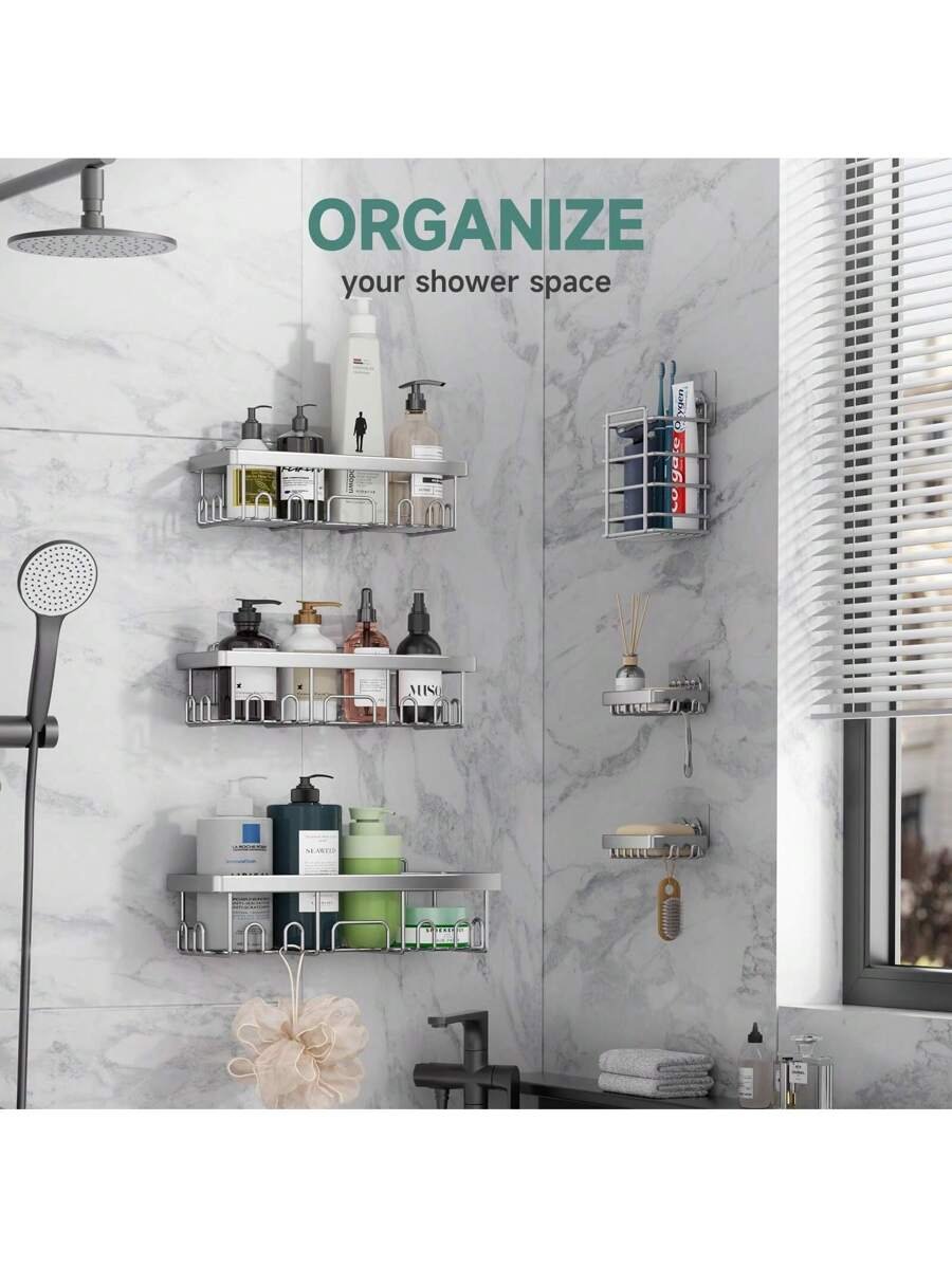 6 Uds. – Cesta de ducha, organizadores de baño, estantes de ducha negros para dentro de la ducha, estantería de pared de acero inoxidable con cestas adheridas, productos de vuelta al colegio