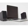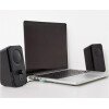 The AC-powered computer speakers will fill the room with clear, bright sound and are compact enough to fit easily on your desk.