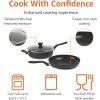- El revestimiento antiadherente de 3 capas garantiza una liberación de alimentos sin esfuerzo y una fácil limpieza; fabricado sin PFOA, PFOS y BPA. Herramientas de silicona y nailon recomendadas para evitar arañazos.