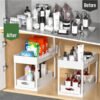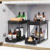 Aoshet Juego de 2 estantes de almacenamiento para el lavabo del baño, contenedores del gabinete del baño, canasta deslizante doble para el gabinete, cesto de almacenamiento multifuncional para el baño, debajo del gabinete con 8 ganchos para estantes de almacenamiento