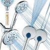 - ¡MÁS PRESIÓN, MENOS LIMPIEZA, AGUA PURIFICADA! Nuestra revolucionaria ducha de mano patentada de 10 ajustes de 6 zonas cuenta con un filtro de ducha integrado de primera calidad y lavado de energía de 2 modos para una fácil limpieza de bañera, azulejos y mascotas. Su cara de gran tamaño de 4.5 pulgadas y el cabezal de ducha de lluvia de 6 pulgadas a juego tienen boquillas antiobstrucción que ofrecen una presión de agua superior y una cobertura de flujo más amplia con menos limpieza que otros cabezales de ducha. Fácil conexión sin herramientas en cualquier ducha. Incluye desviador de agua de 4 vías y manguera de ducha de 6 pies.