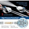 - Lavado a presión de 2 modos integrado: ¿Cansado de esa desagradable espuma de jabón y cabello seco que queda después de cada ducha? Límpialo en segundos desde hasta 6 pies de distancia sin poner el pie en tu ducha. Utiliza el chorro de doble punto para eliminar instantáneamente la suciedad rebelde, o el spray de ventilador ancho para enjuagar rápidamente áreas grandes. Su patrón de flujo suave es perfecto para lavar mascotas de cualquier tamaño y raza con la manguera de acero inoxidable extralargo de 72 pulgadas que proporciona mayor alcance y movilidad.