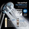 - Protección pura y limpia de por vida: los estudios muestran que los cabezales de ducha ordinarios a menudo están infestados de mugre que crece rápidamente durante la noche, luego se destellan en tu cara con la ducha matutina. Es por eso que mantener el cabezal de ducha limpio es esencial para una buena higiene de la ducha. Las boquillas AquaCare están hechas con un revolucionario material Stay-Clean que funciona 24/7 a nivel molecular para evitar su contaminación. Esta protección es 100% segura y eficaz para la vida útil del producto y nunca se desgasta.