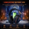 - Conexión estable y sonido estéreo: los auriculares inalámbricos Gtheos Captain 300 para juegos combinan tecnología inalámbrica sin pérdidas de 2.4 GHz de alto rendimiento para una conexión accesible de hasta 49 pies en un espacio sin obstáculos. Una latencia más baja (≤ 20 ms) y un controlador de 1.969 in con un 30% de efecto de sonido adicional garantizan que los auriculares inalámbricos para juegos proporcionen un sonido estéreo de mayor calidad, lo que te hace sentir la voz de las direcciones, pasos y cada detalle claramente en los juegos para una mejor experiencia de juego inmersiva. Este auricular ps5 es muy adecuado para Fortnite/Starfield/Call of Duty/PUBG