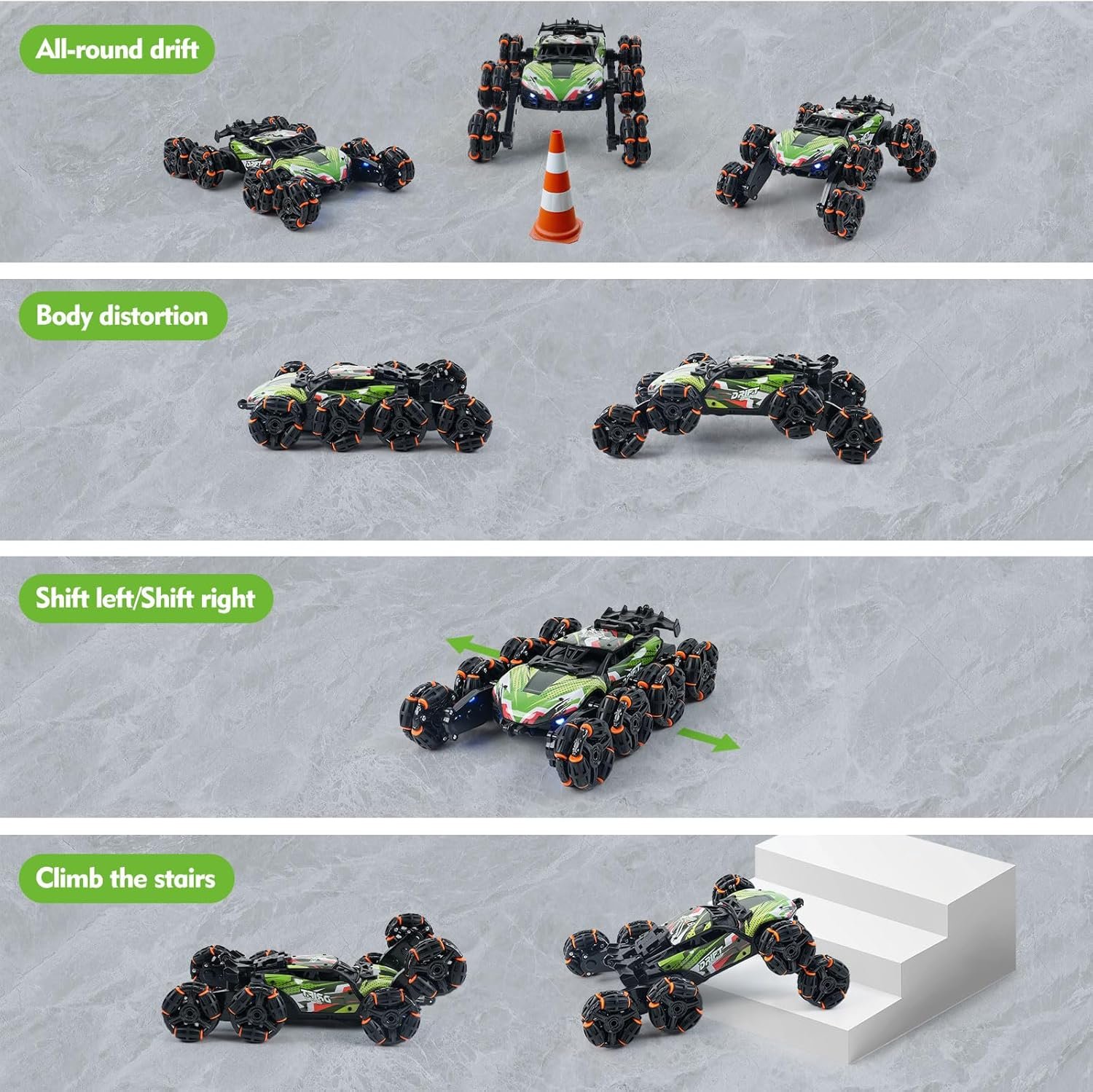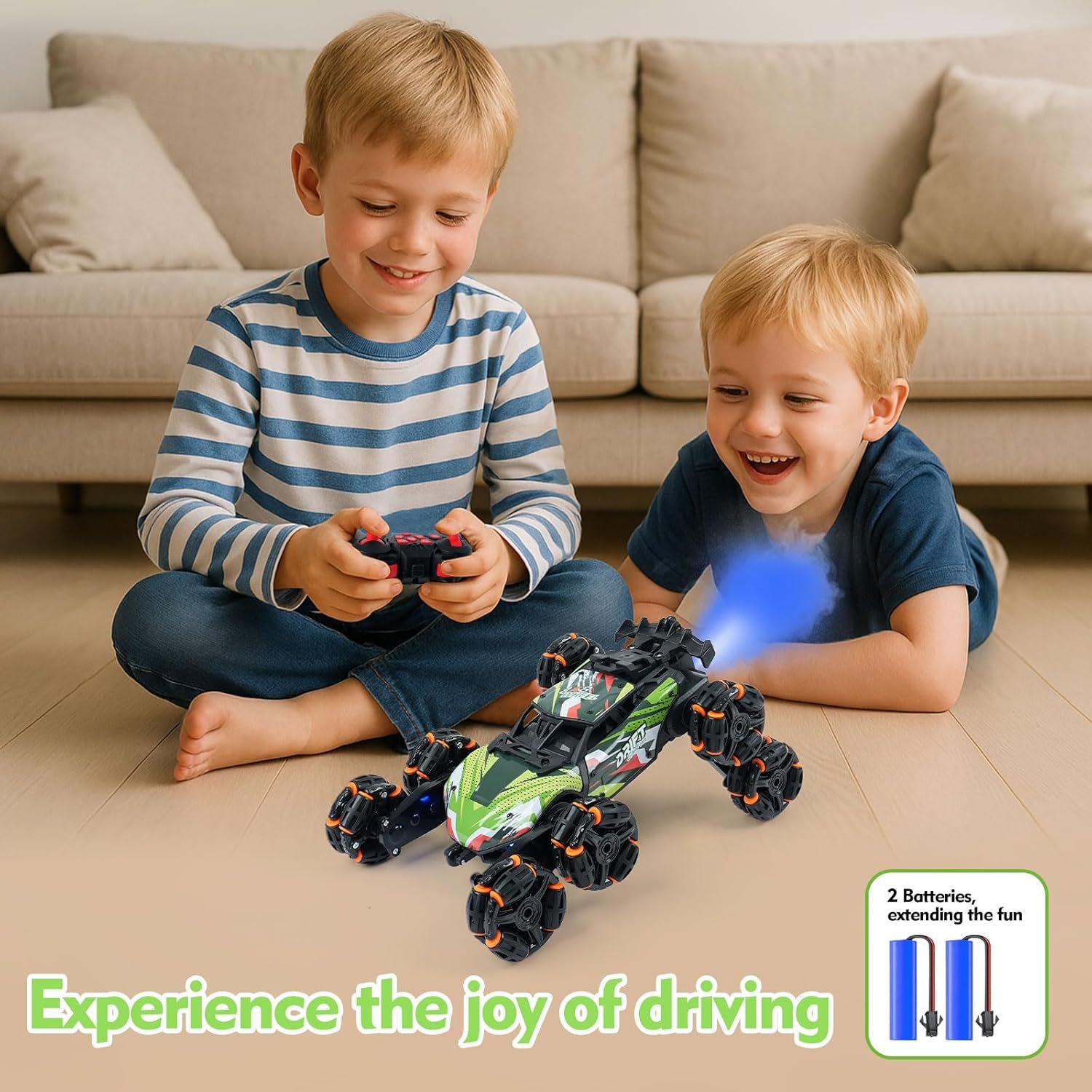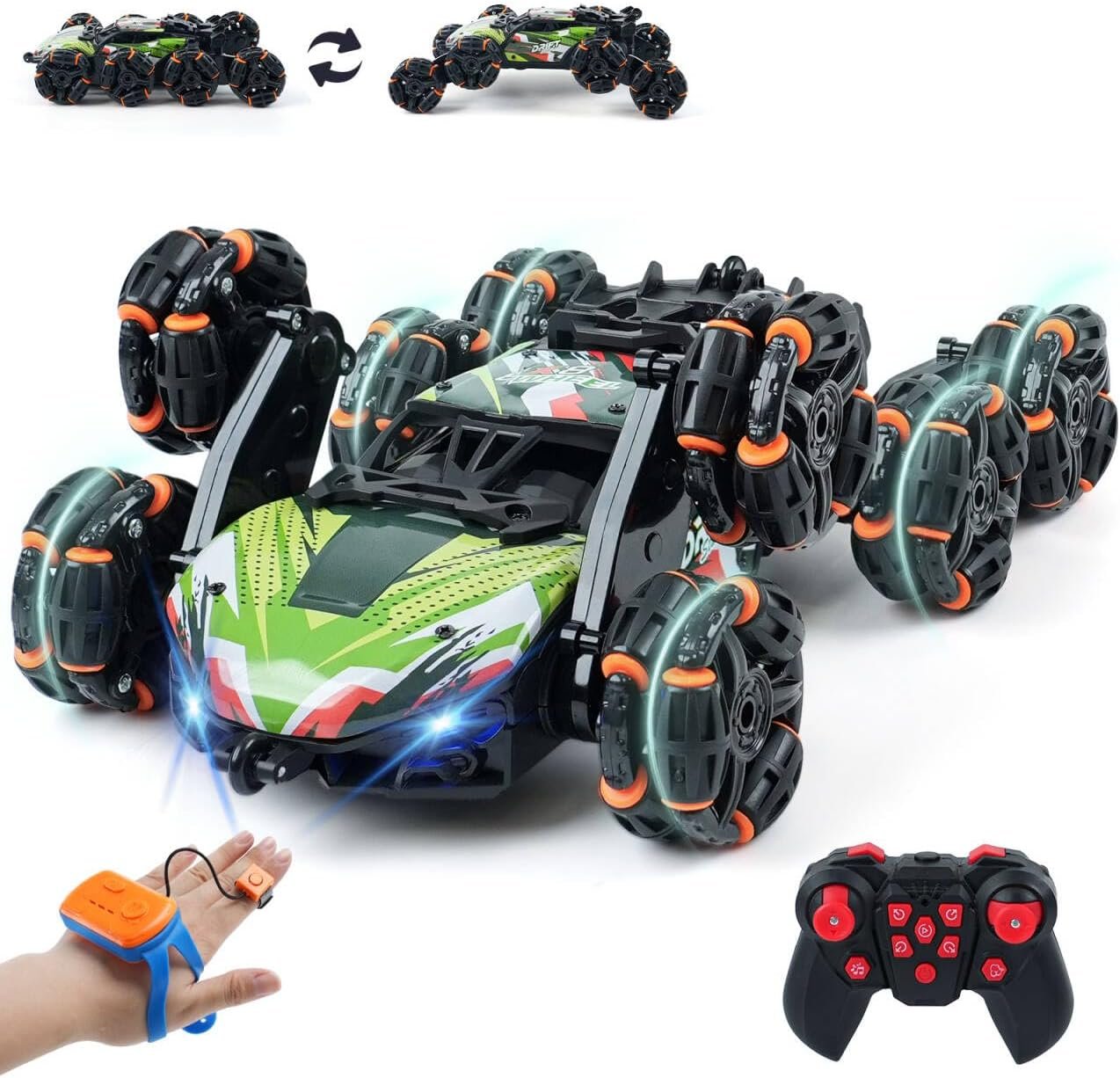 - Un regalo que inspira la aventura: sorprende a los niños de 6 a 8 años de edad 8 a 12 años con un regalo que destaca: un auto de acrobacias a control remoto de 8 ruedas lleno de acción. Ya sea un cumpleaños, Navidad o simplemente un regalo especial, este automóvil controlado por gestos trae emoción con movimientos dinámicos y juego interactivo. Para los niños que aman los desafíos y la emoción, este es el tipo de regalo que hace que cada tiempo de juego sea inolvidable.
