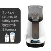 El calentador de biberones Baby Brezza Safe + Smart es el único calentador de biberones con Bluetooth y 2 ajustes de calor para calentar de forma segura y uniforme la leche materna, la fórmula y los frascos de comida para bebés en cuestión de minutos. Un ajuste es Steady Warm, un baño de agua tibia que calienta o descongela de forma segura la leche materna y conserva sus nutrientes (a diferencia de la mayoría de los otros calentadores que usan calor de vapor que destruye las proteínas de la leche materna). El otro ajuste de calentamiento es Quick Warm, que utiliza calor de vapor para calentar rápidamente la fórmula o los alimentos para bebés. Puedes usar la aplicación Baby Brezza GRATIS y Bluetooth para operar el calentador y recibir alertas cuando tu botella esté lista para que no tengas que cuidar tu botella. El calentador Safe + Smart se adapta a todas las marcas y tamaños de botellas, la mayoría de bolsas de almacenamiento (congeladas o descongeladas) y frascos de plástico y vidrio. Es fácil de usar: simplemente elige tu configuración y el calentador hará el resto, se apaga automáticamente cuando termines. 1 año de garantía limitada.