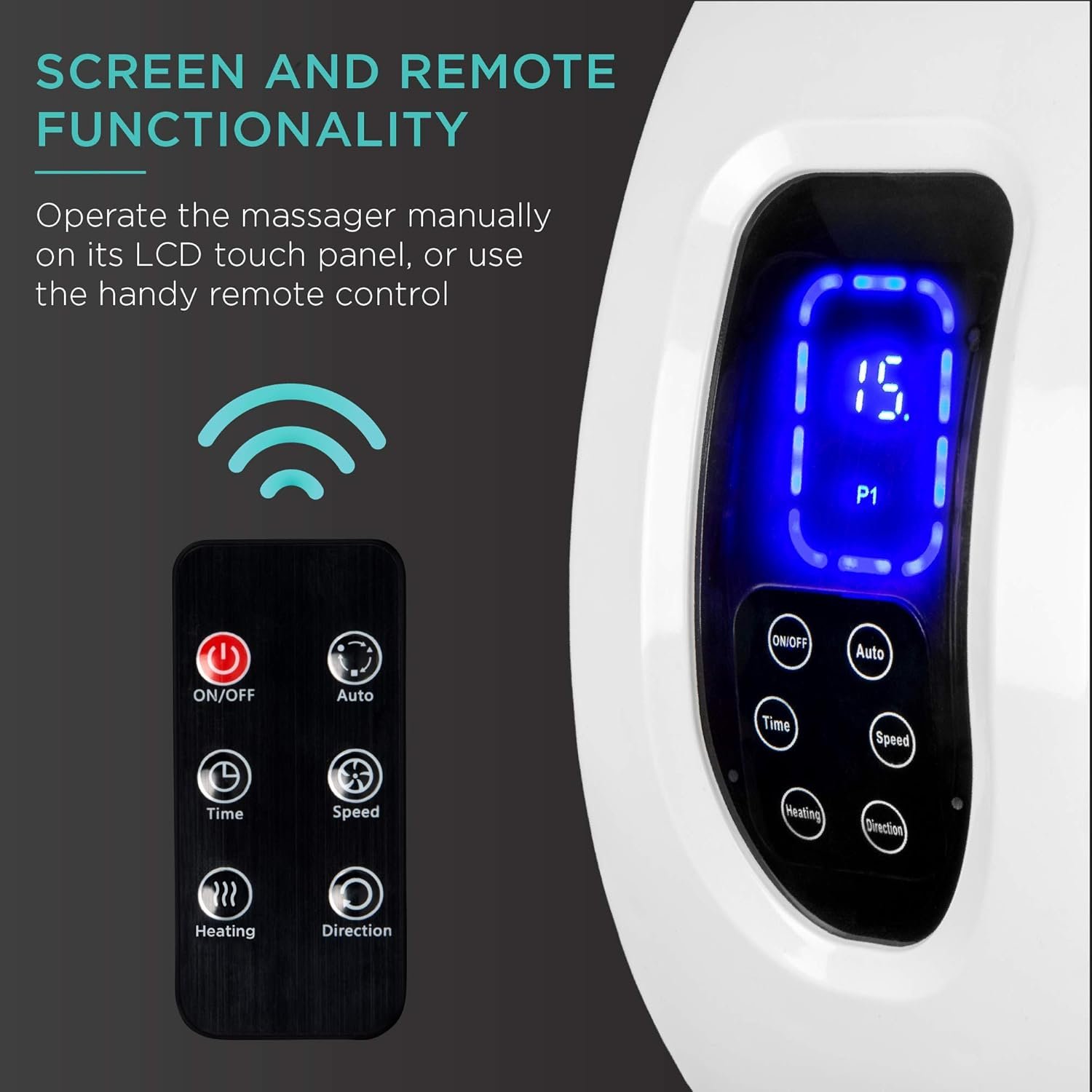 1. Utiliza el asa integrada para ayudar a llevar el masajeador para uso en movimiento. 2. Ajuste los nodos de terapia de calor a una temperatura deseada de hasta 122 grados Fahrenheit para estimular los puntos de estrés en los pies. 3. Utiliza la pantalla táctil y el control remoto para encender o apagar el masajeador, ajustar los ajustes de tiempo, calefacción, dirección y velocidad, o configurarlo en Auto para un masaje preprogramado. 4. Pruebe los cuatro masajes, incluyendo amasar, rodar, calentar y presionar, para proporcionar alivio puntiagudo en diferentes áreas de los pies. 5. Guarde el cable de alimentación en el espacio designado cuando no esté en uso. 6. Coloque el masajeador sobre una superficie antideslizante durante el funcionamiento.