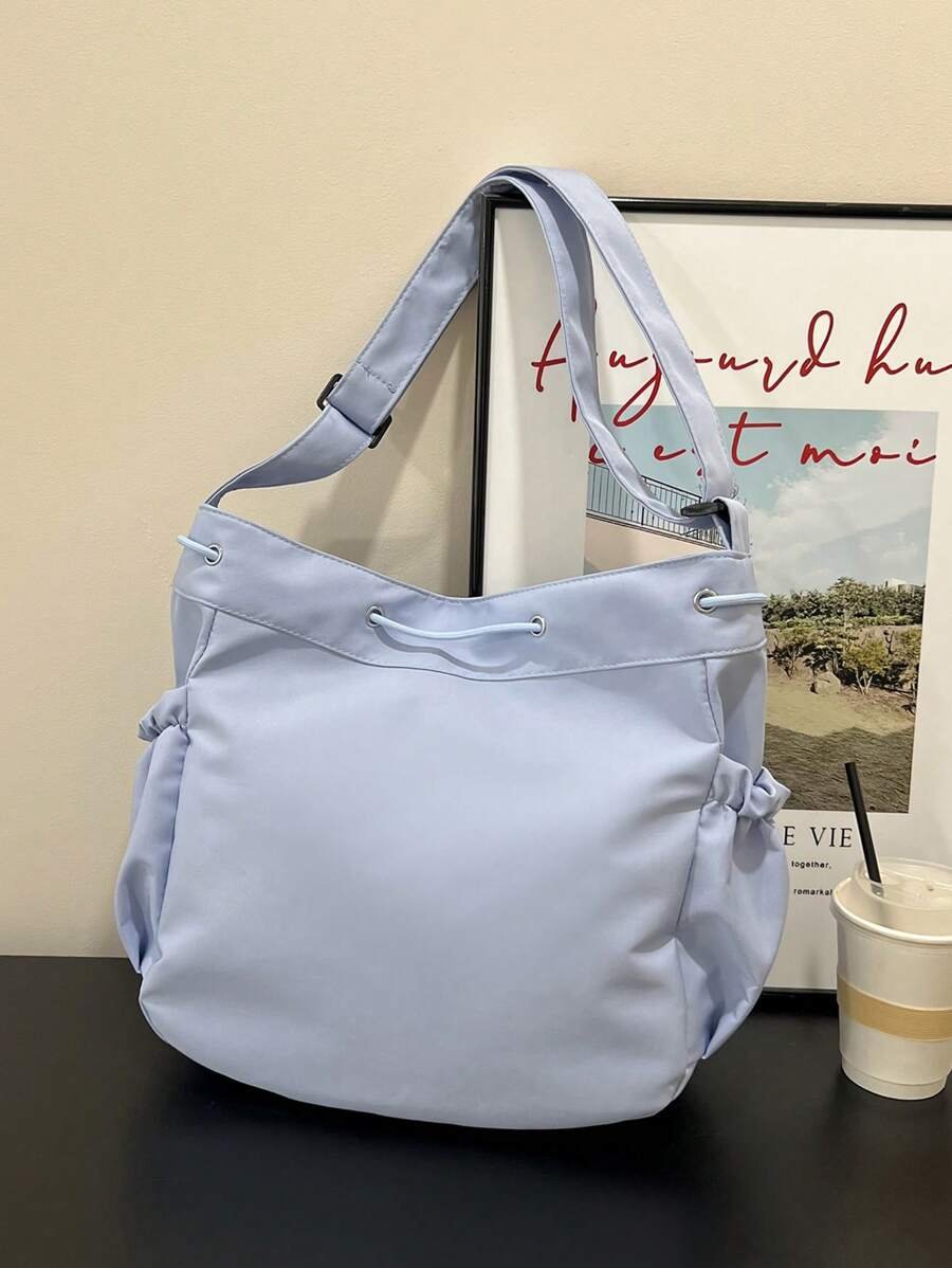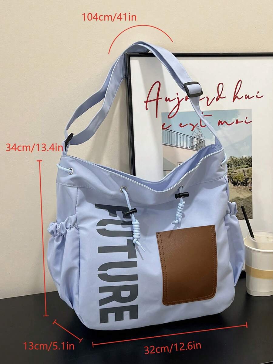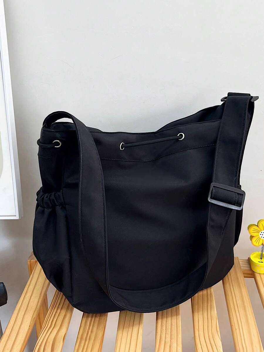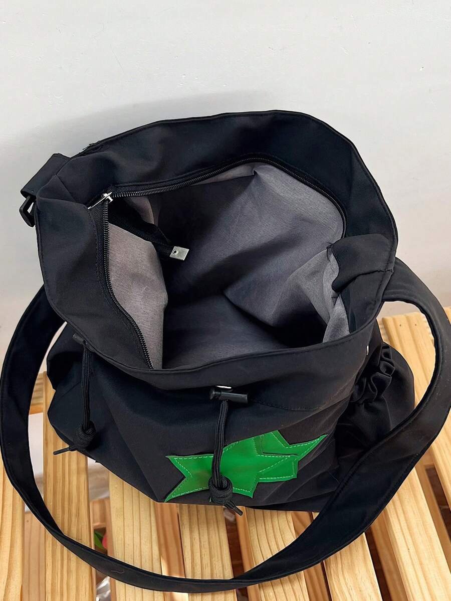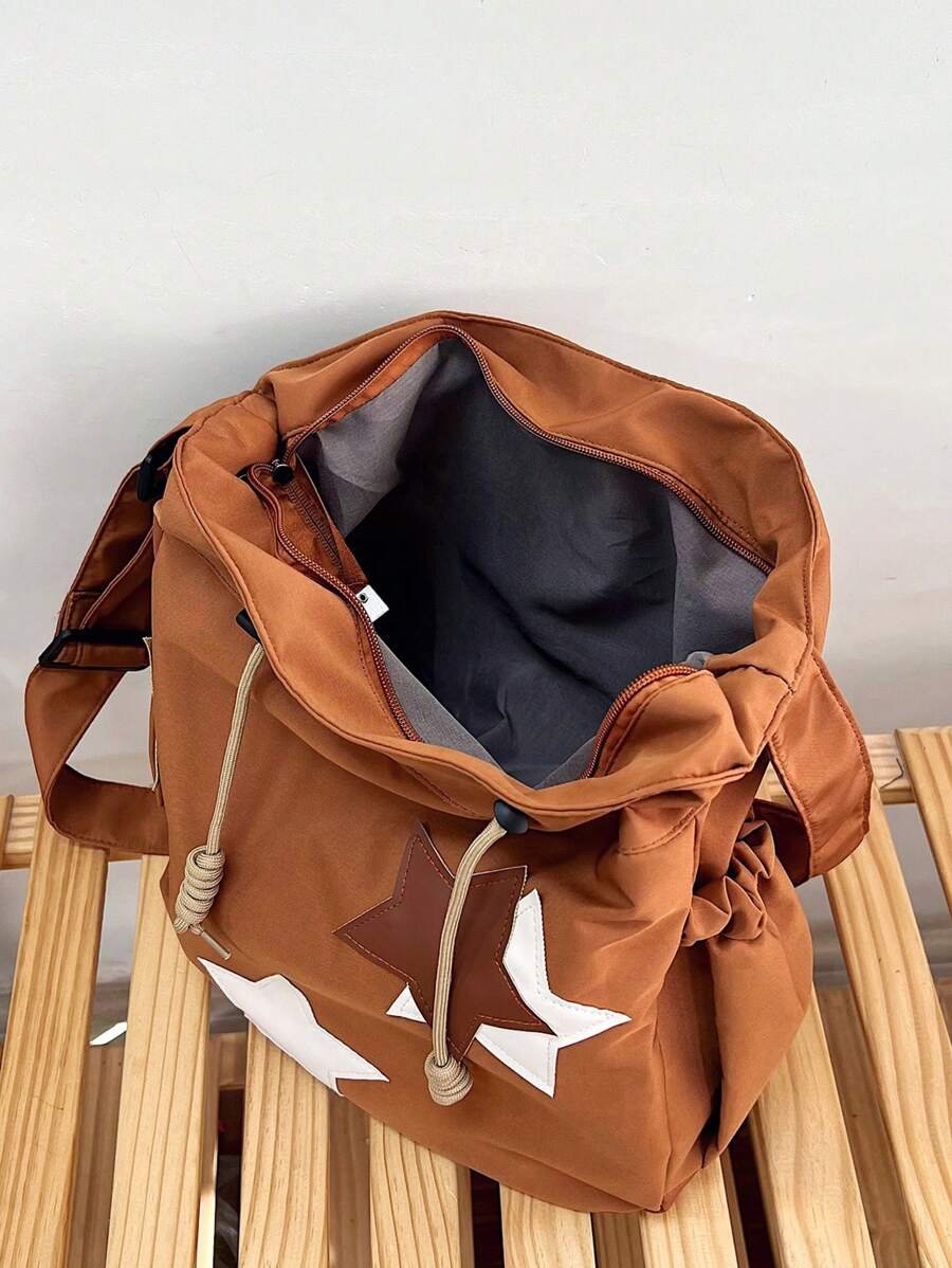 Bolsa de lona grande con decoración de estrella de 5 puntas sólida de nailon de nueva llegada para primavera/verano. Bolso de hombro y bandolera para mujeres, estudiantes y universitarias. Bolsa escolar, bolso escolar, bolsa de libros, impermeable, ligera, plegable, clásica y casual, adecuada para adolescentes, mujeres y estudiantes universitarias, perfecta para volver al colegio, primer día de clases, conciertos
