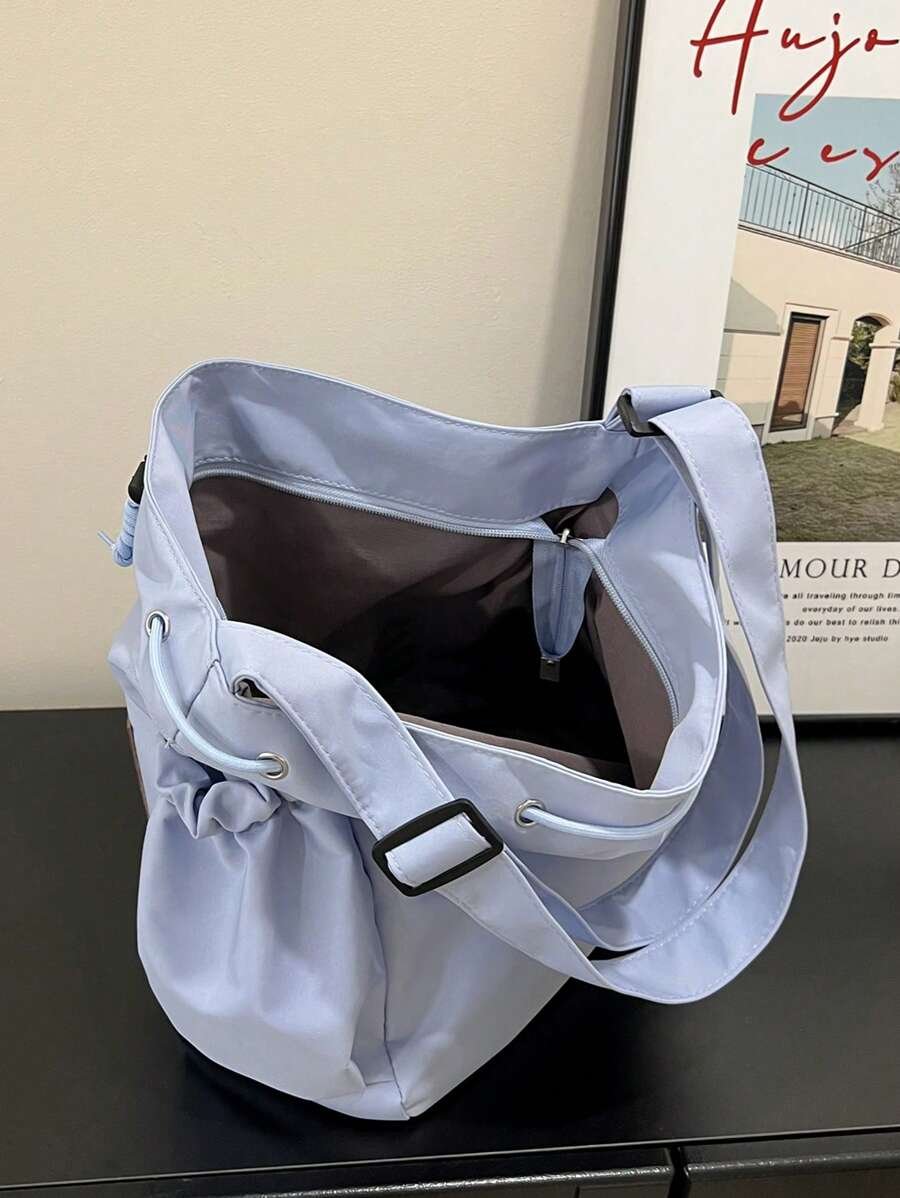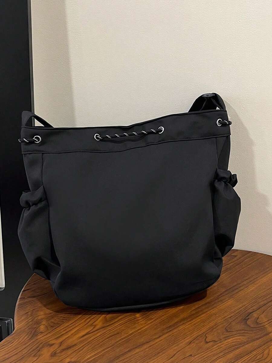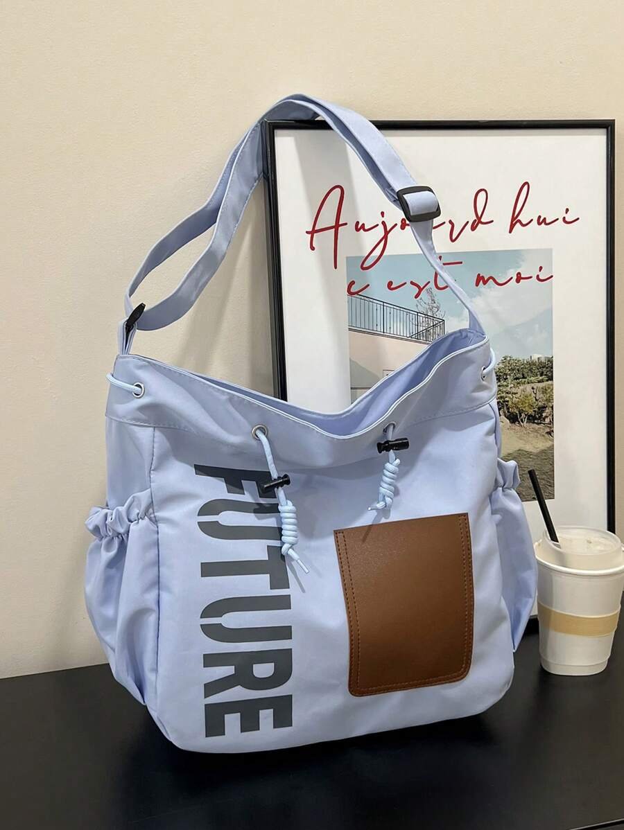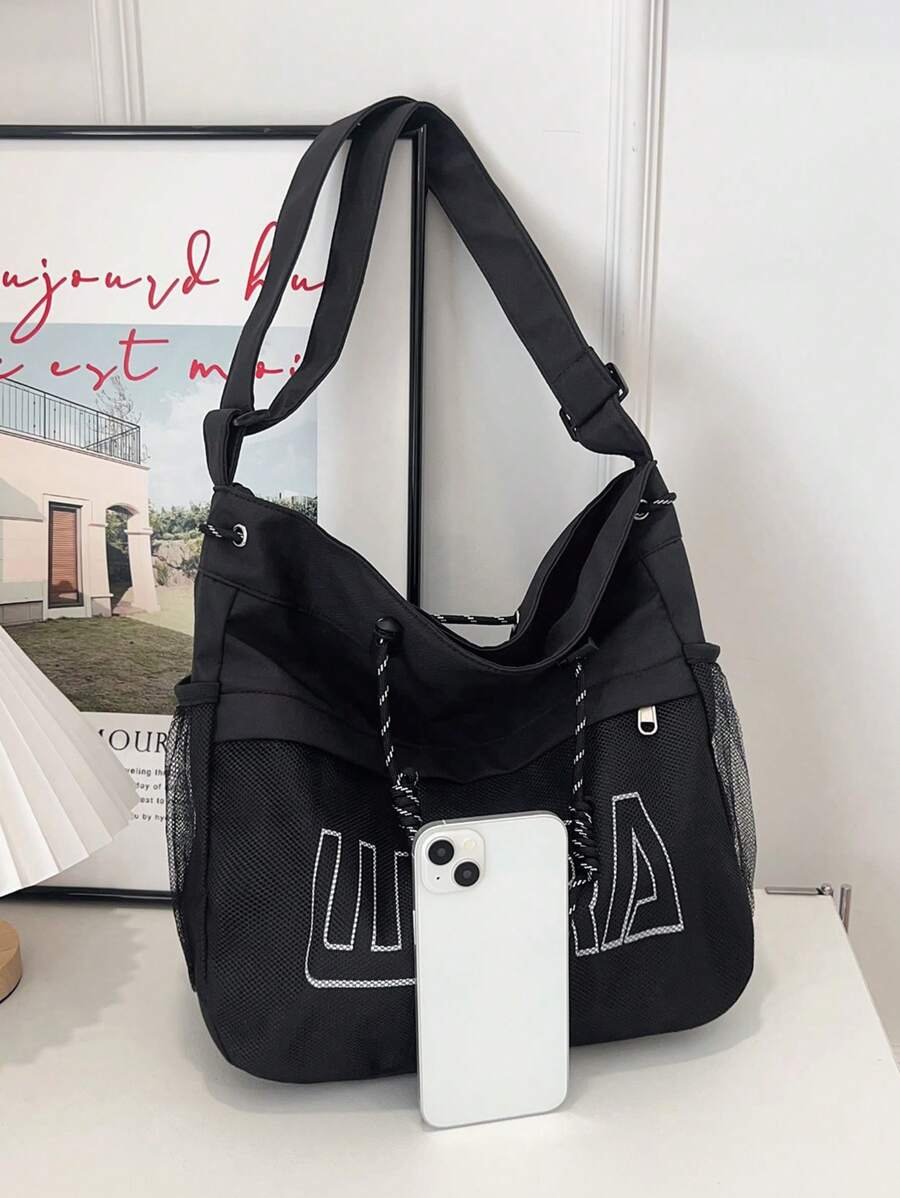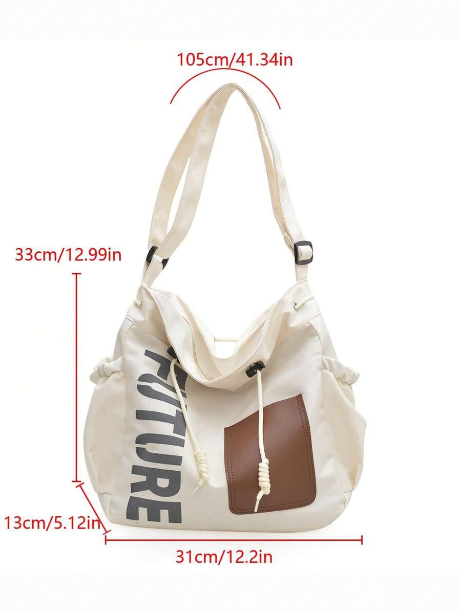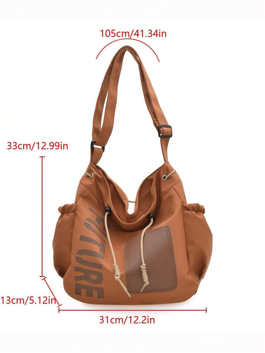 Bolsa de lona grande con decoración de estrella de 5 puntas sólida de nailon de nueva llegada para primavera/verano. Bolso de hombro y bandolera para mujeres, estudiantes y universitarias. Bolsa escolar, bolso escolar, bolsa de libros, impermeable, ligera, plegable, clásica y casual, adecuada para adolescentes, mujeres y estudiantes universitarias, perfecta para volver al colegio, primer día de clases, conciertos
