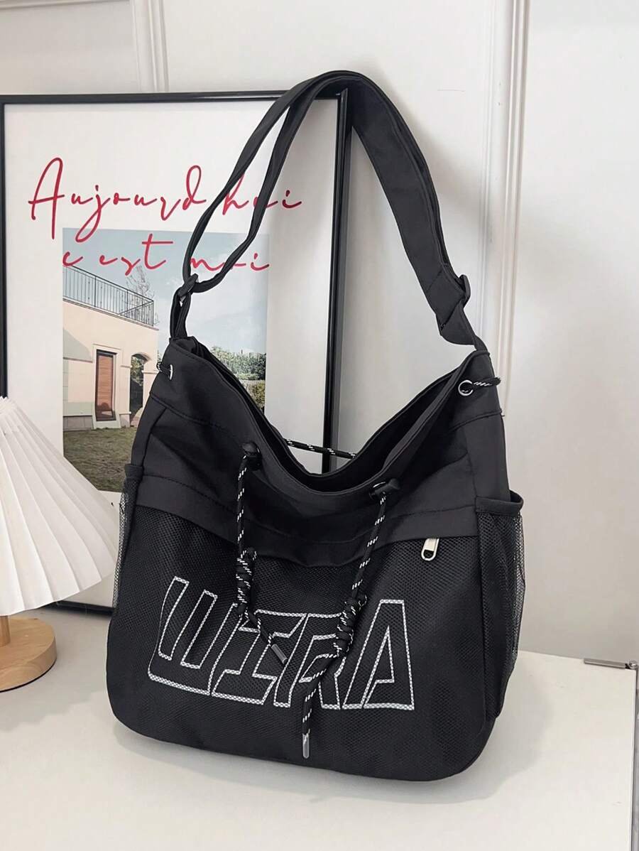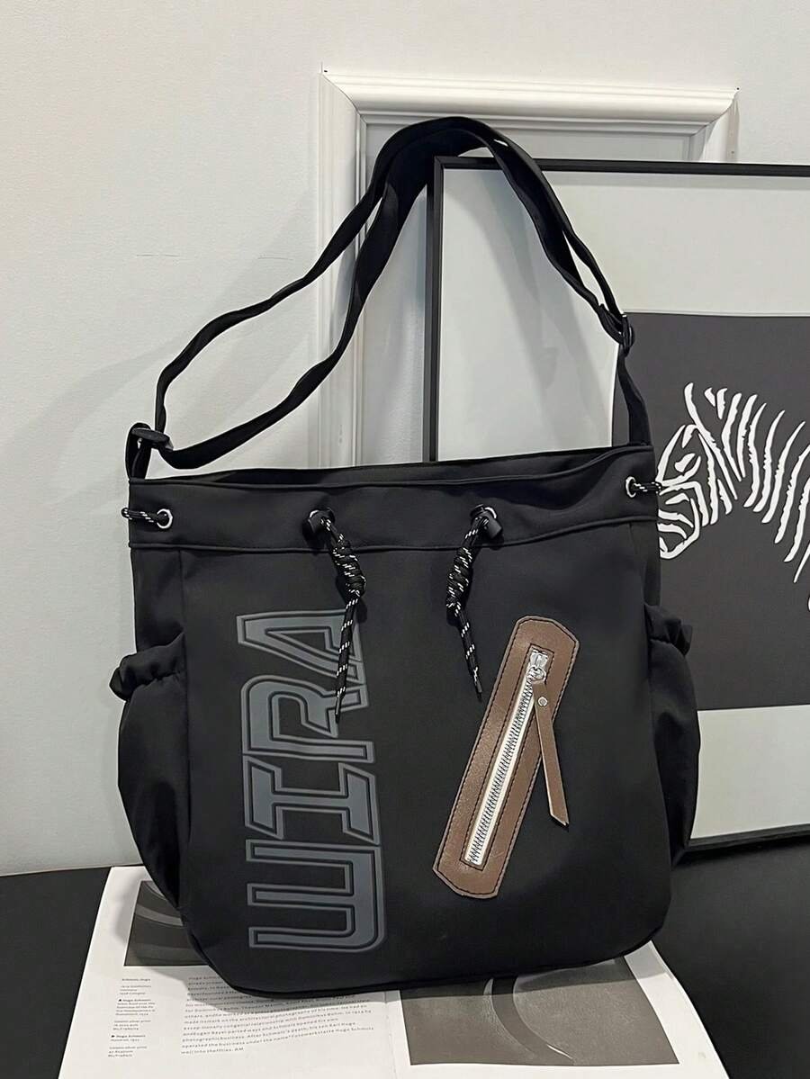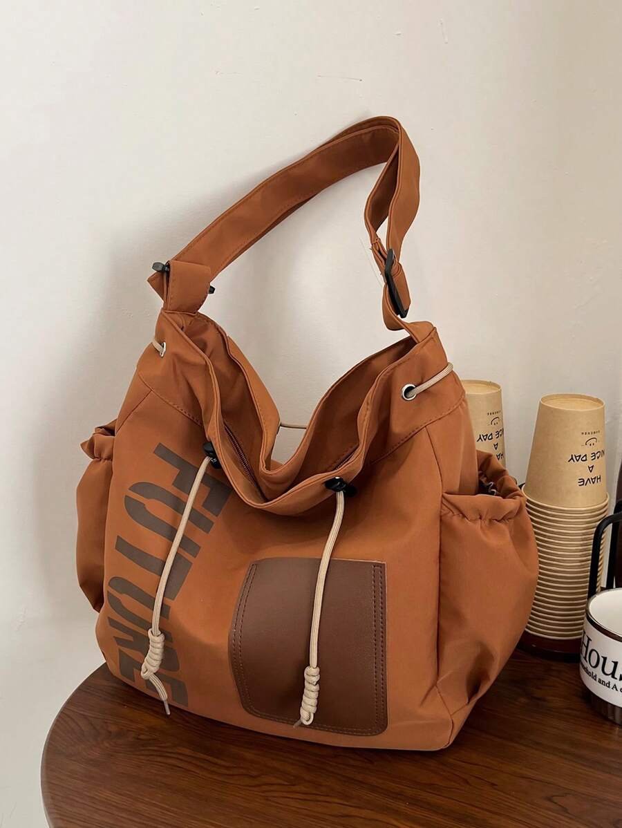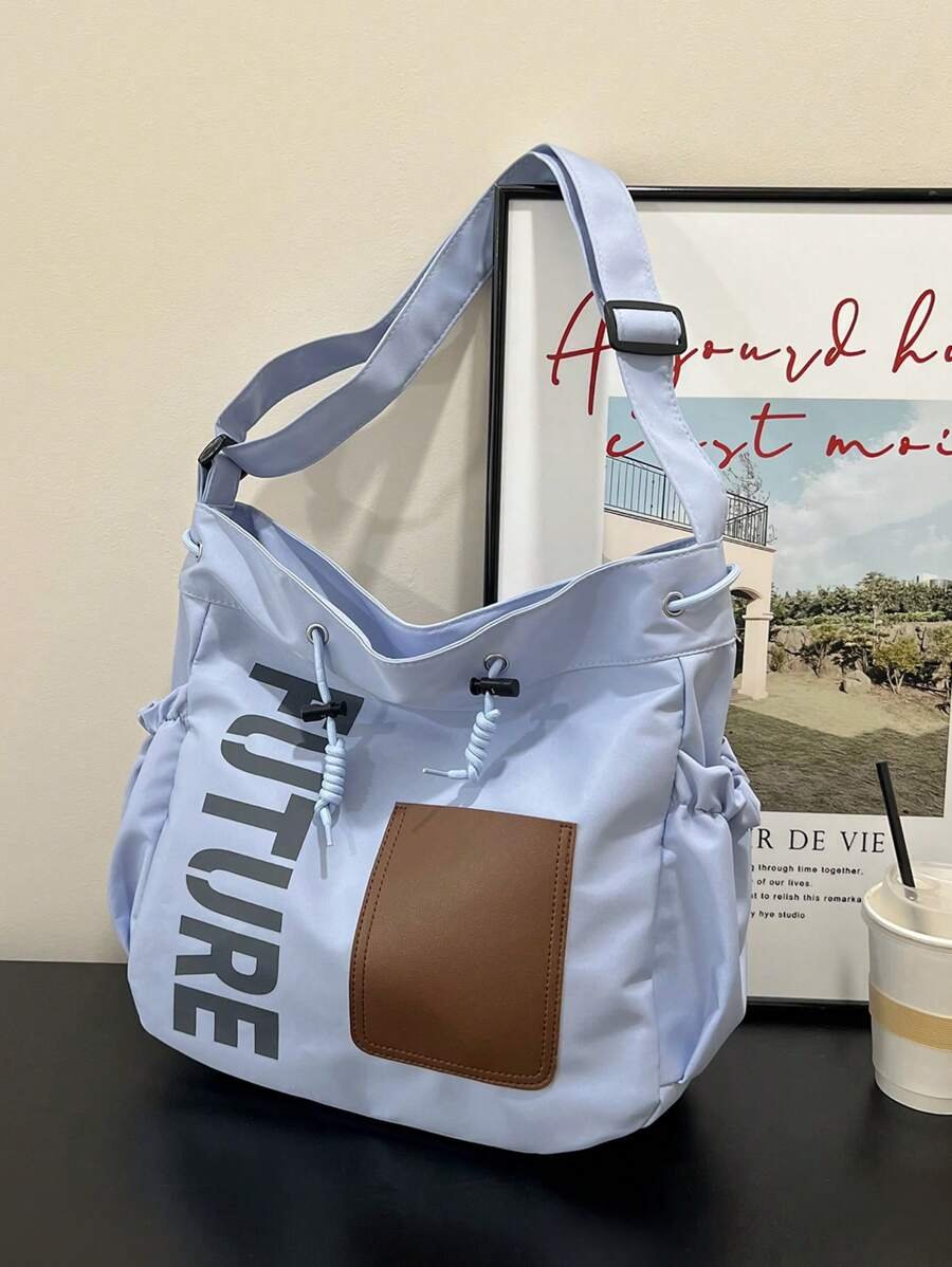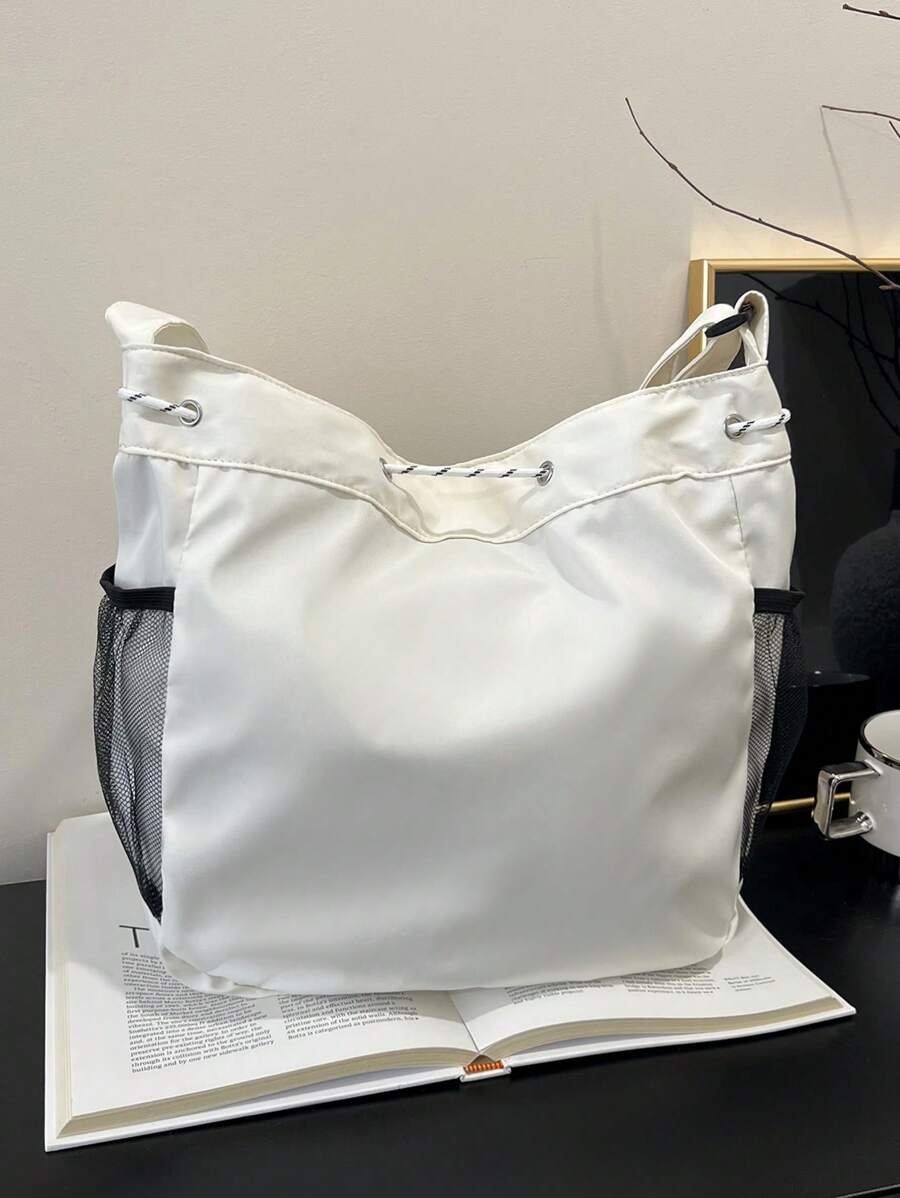 Bolsa de lona grande con decoración de estrella de 5 puntas sólida de nailon de nueva llegada para primavera/verano. Bolso de hombro y bandolera para mujeres, estudiantes y universitarias. Bolsa escolar, bolso escolar, bolsa de libros, impermeable, ligera, plegable, clásica y casual, adecuada para adolescentes, mujeres y estudiantes universitarias, perfecta para volver al colegio, primer día de clases, conciertos