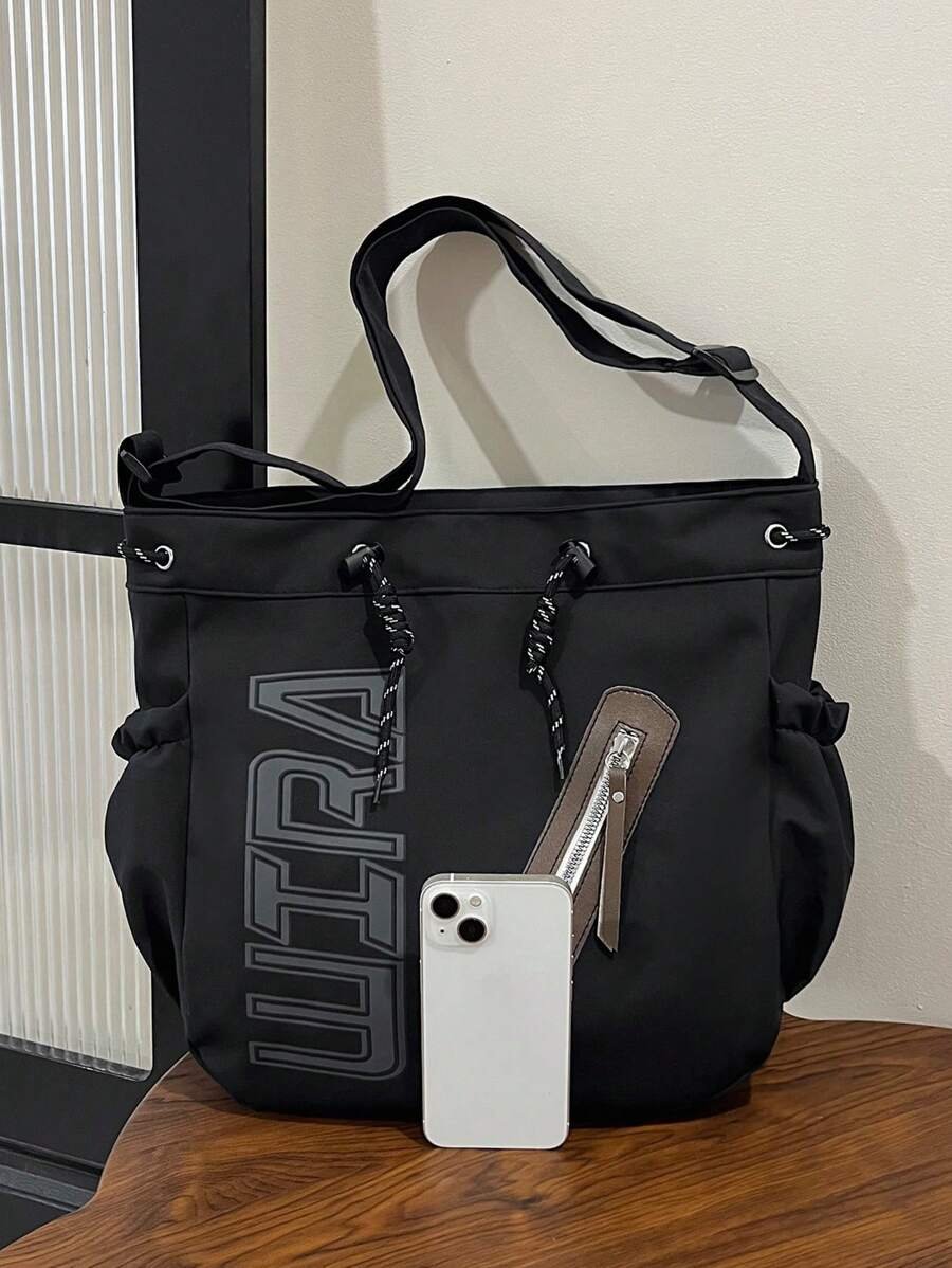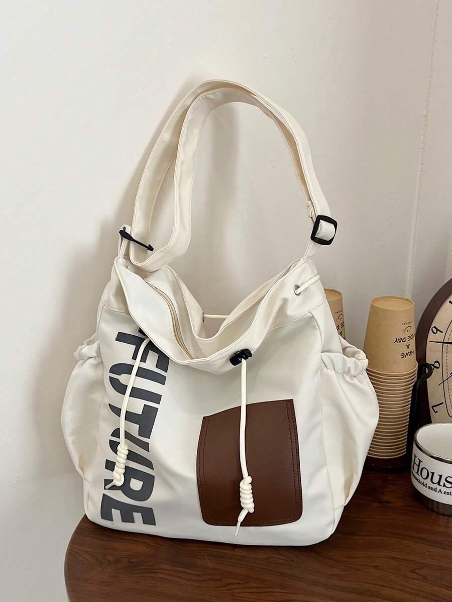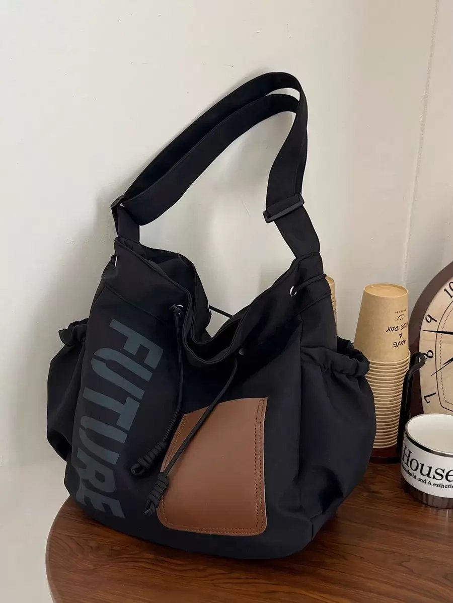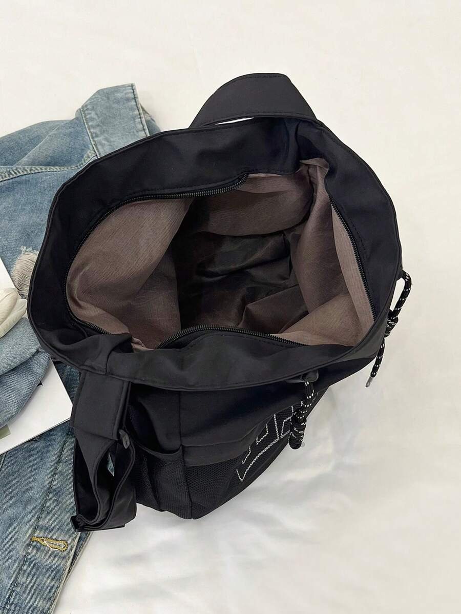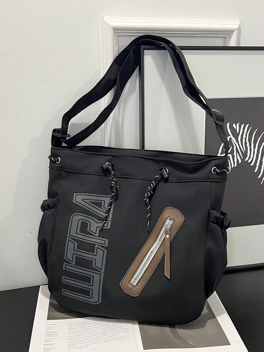 Bolsa de lona grande con decoración de estrella de 5 puntas sólida de nailon de nueva llegada para primavera/verano. Bolso de hombro y bandolera para mujeres, estudiantes y universitarias. Bolsa escolar, bolso escolar, bolsa de libros, impermeable, ligera, plegable, clásica y casual, adecuada para adolescentes, mujeres y estudiantes universitarias, perfecta para volver al colegio, primer día de clases, conciertos
