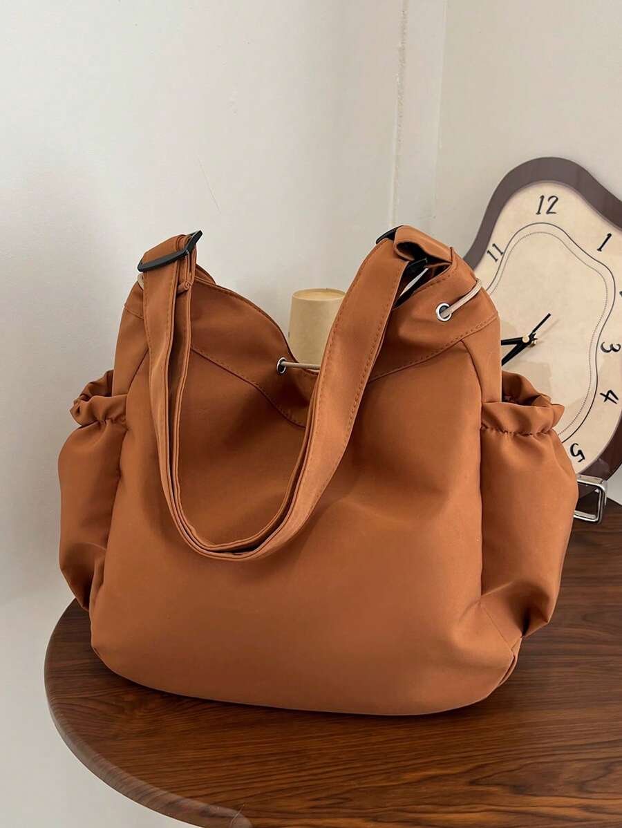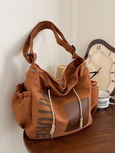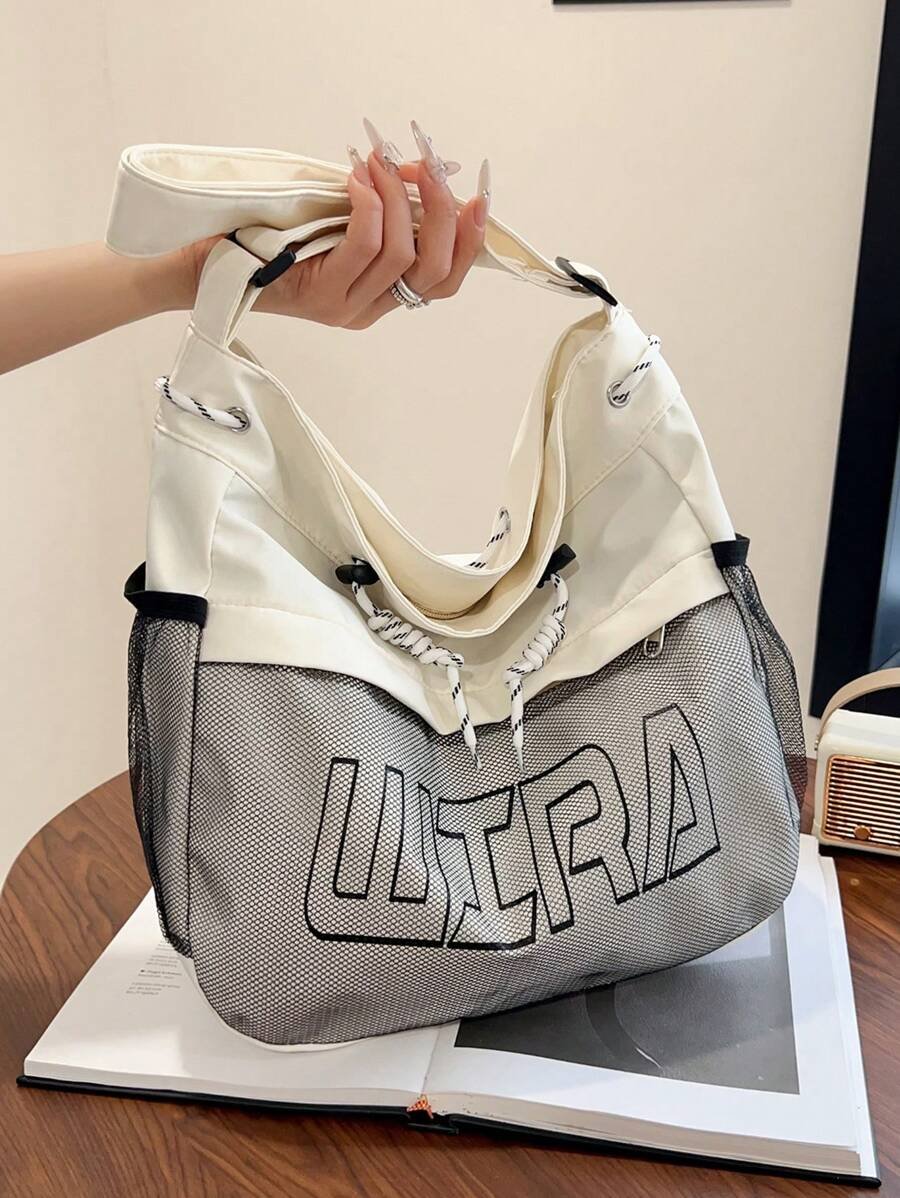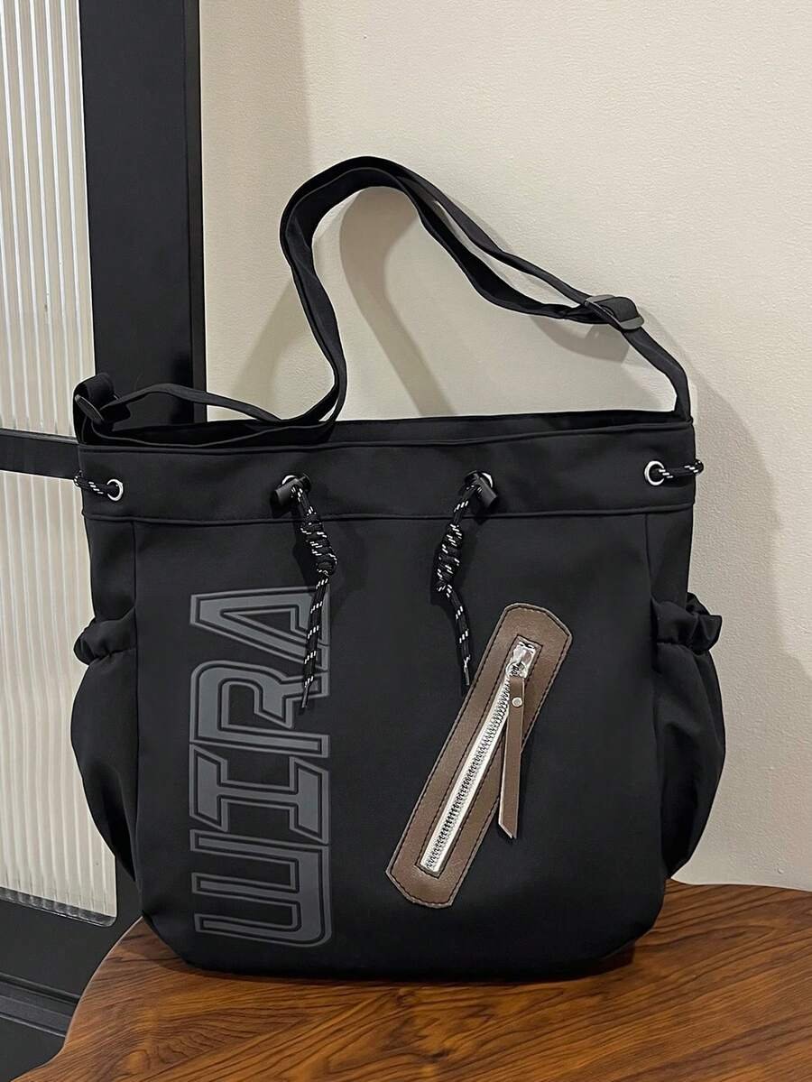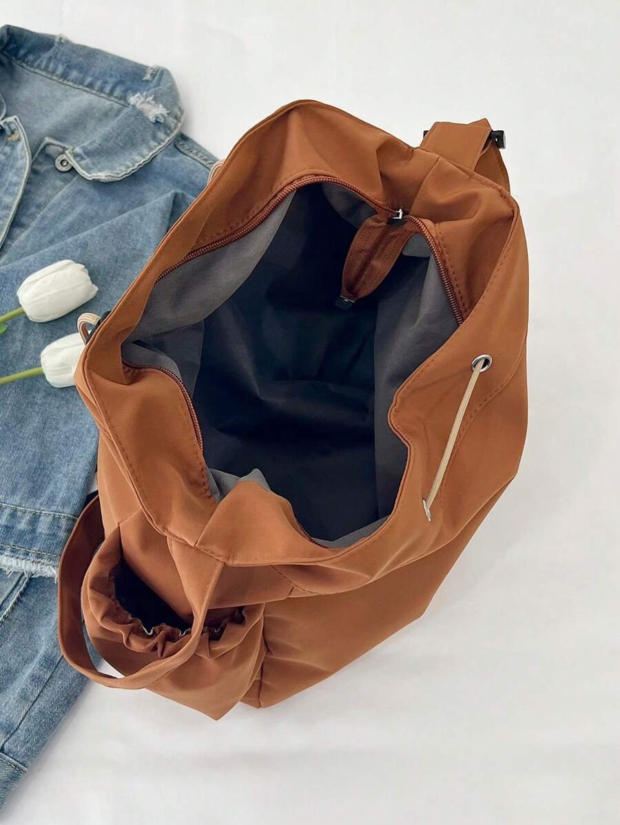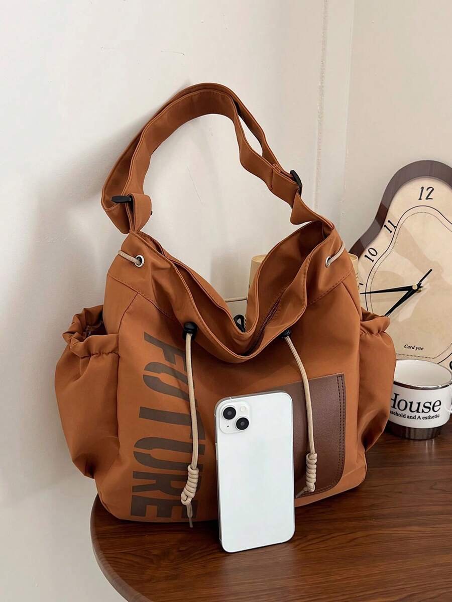 Bolsa de lona grande con decoración de estrella de 5 puntas sólida de nailon de nueva llegada para primavera/verano. Bolso de hombro y bandolera para mujeres, estudiantes y universitarias. Bolsa escolar, bolso escolar, bolsa de libros, impermeable, ligera, plegable, clásica y casual, adecuada para adolescentes, mujeres y estudiantes universitarias, perfecta para volver al colegio, primer día de clases, conciertos