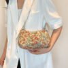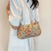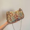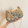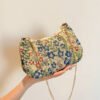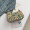 Bolso de hombro de correa de cadena de moda, bolso de muñeca con correa de cadena de metal para mujer para ocasiones casuales y de trabajo, patrón floral