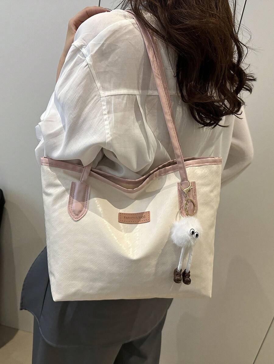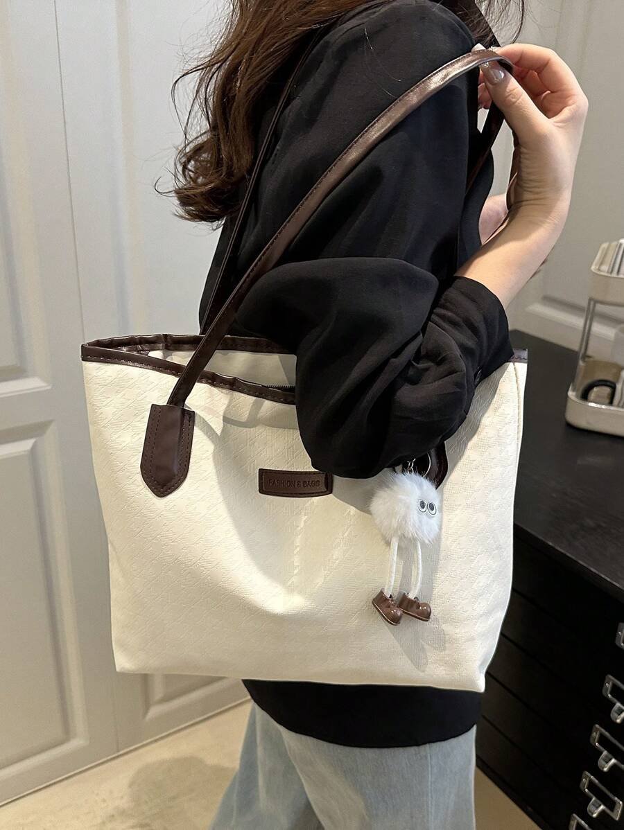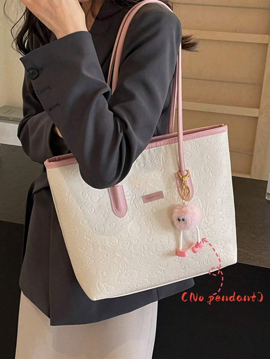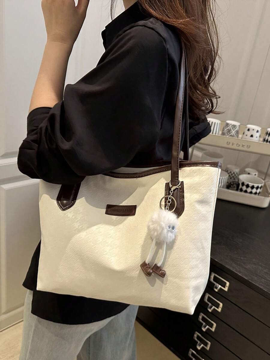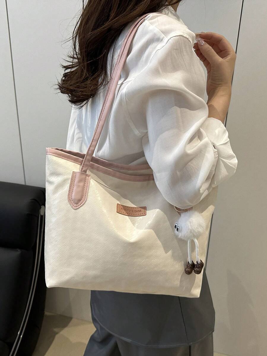 Bolso de hombro versátil y de moda con gran capacidad para mujeres, nuevo bolso de lona tipo tote, diseño preferido, perfecto para la escuela, el transporte y las compras (sin colgante)