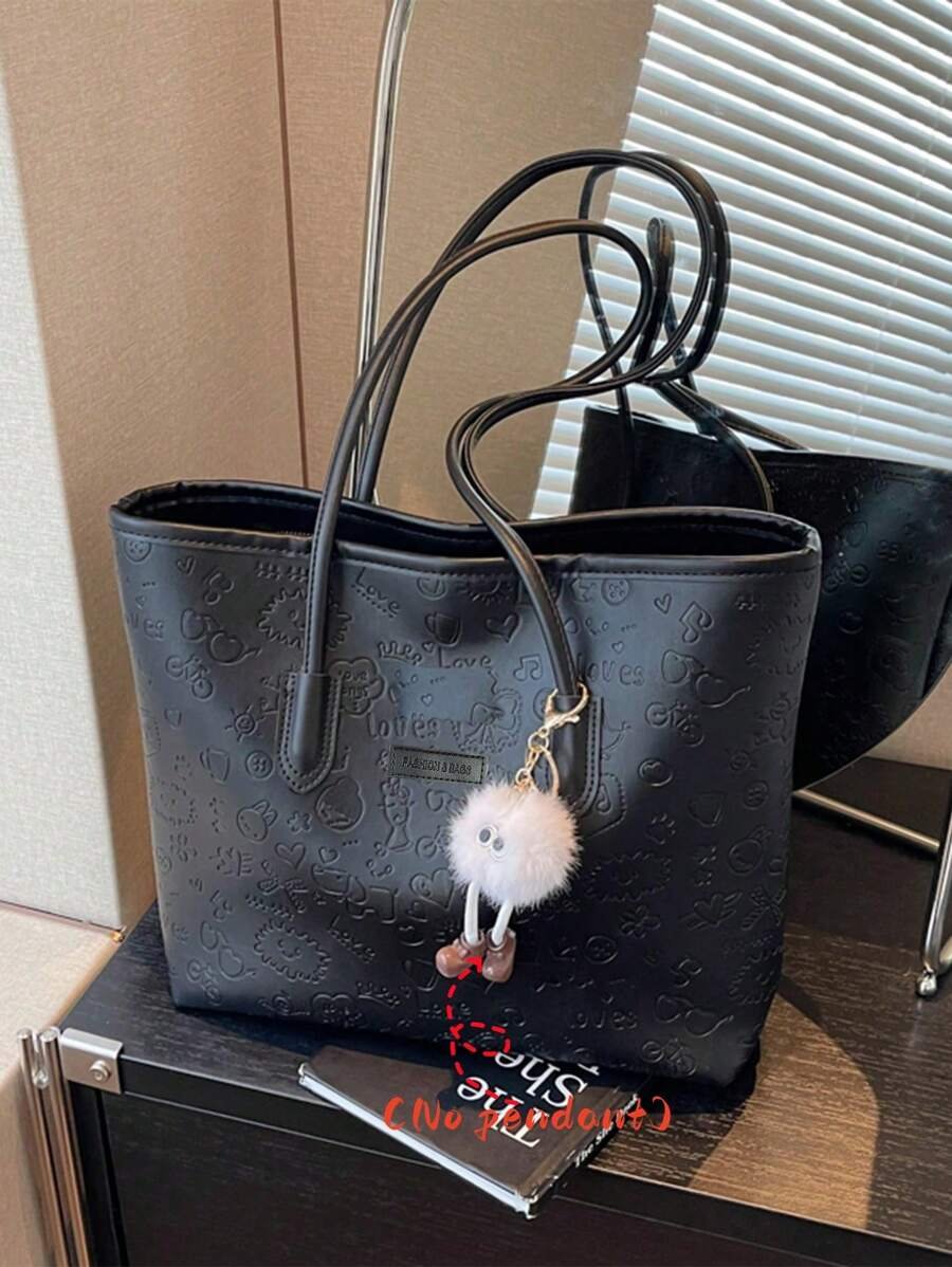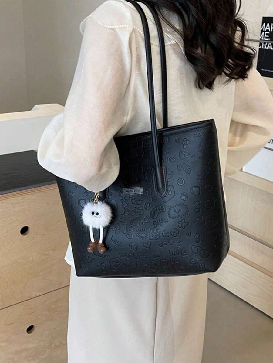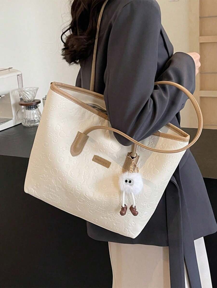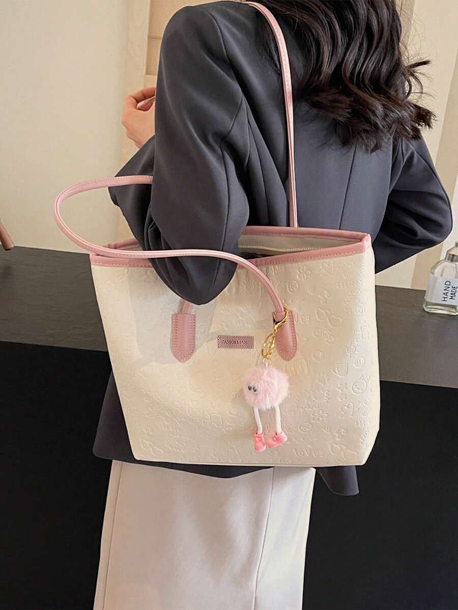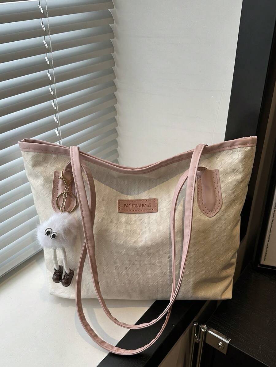 Bolso de hombro versátil y de moda con gran capacidad para mujeres, nuevo bolso de lona tipo tote, diseño preferido, perfecto para la escuela, el transporte y las compras (sin colgante)