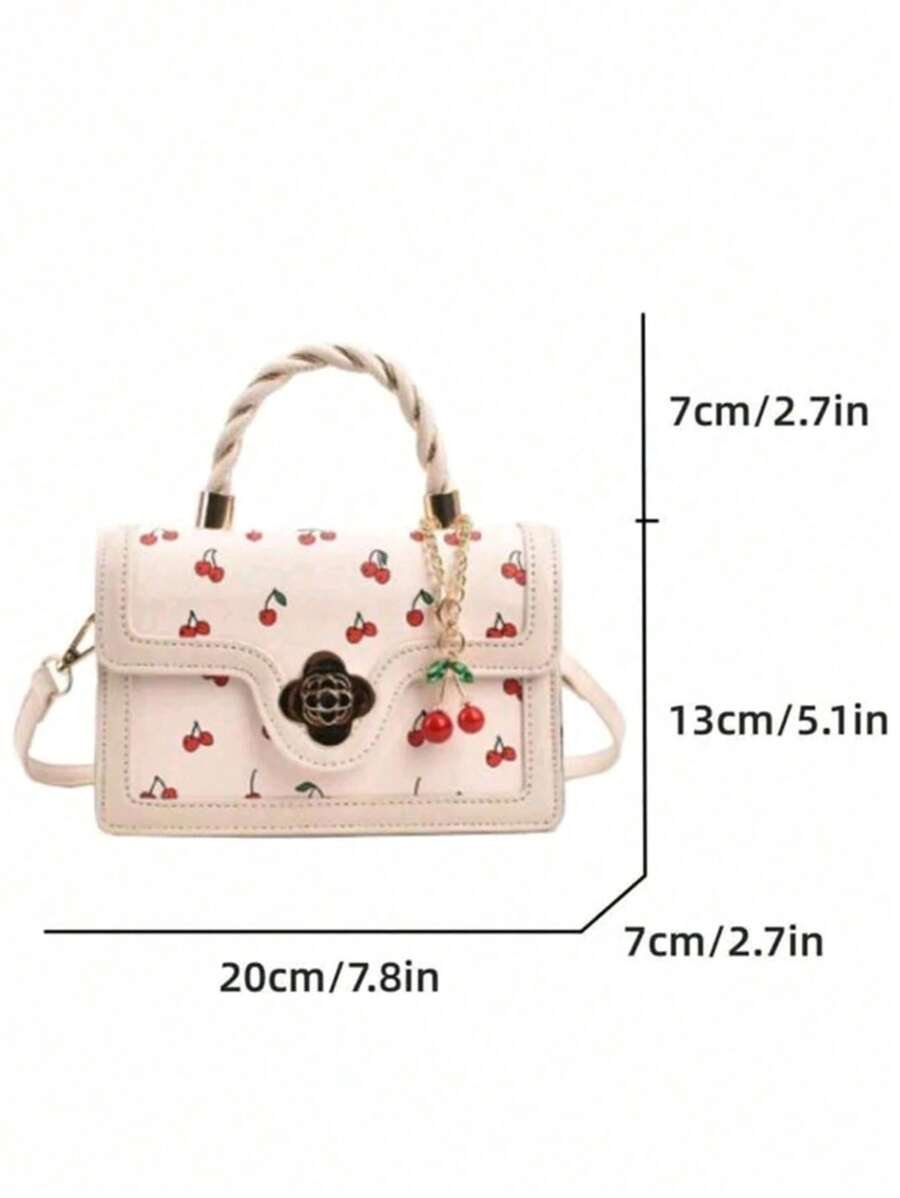 Bolso tote de PU de alta gama y estilo moderno con forma cuadrada versátil y un bonito estampado de cerezas, perfecto para ir de compras, citas o para llevar cruzado. Elementos de cereza kawaii para San Valentín.
