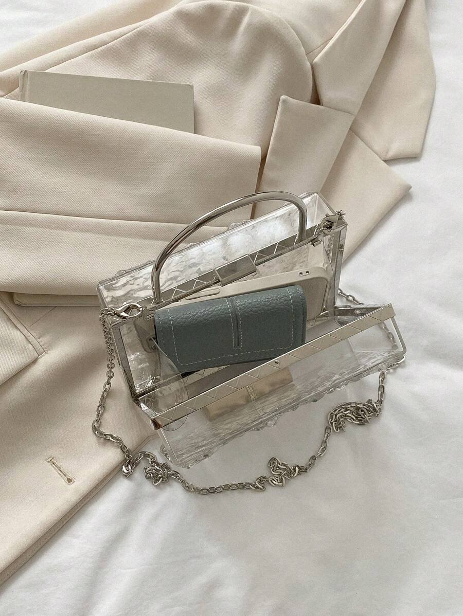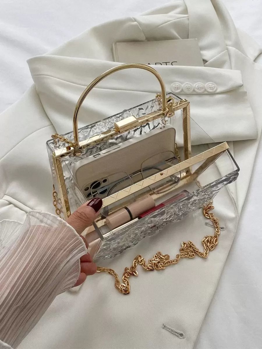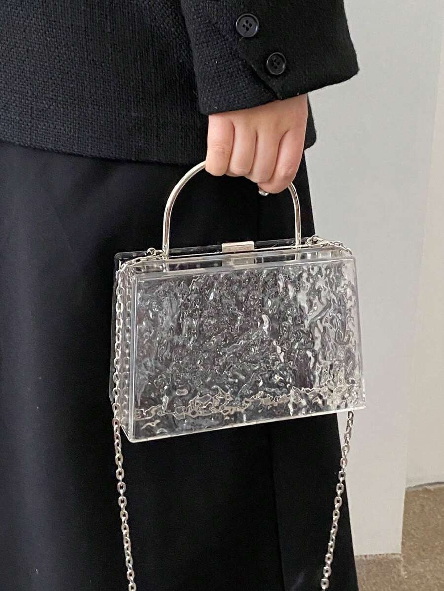 Bolso transparente ligero, de moda y resistente al agua con textura mini casual y cadena para chicas adolescentes y mujeres universitarias perfecto para la universidad, el trabajo, exteriores, viajes y salidas. Bolsa transparente a prueba de agua y arena para deportes de playa y merienda. Bolso transparente para mujeres.