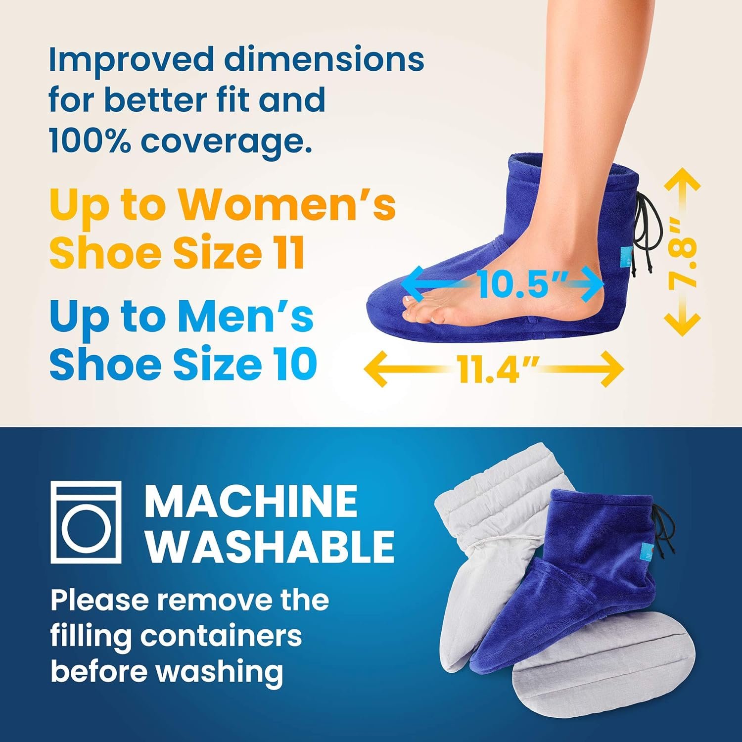 Calienta nuestros populares botines de terapia de calor en el microondas, desliza tus pies en su calor relajante y experimenta instantáneamente: