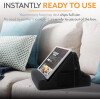 • No solo para el trabajo: si te gusta viajar mientras ves una película, o tal vez te gusta llamar por video a amigos o familiares mientras estás en movimiento, entonces nuestro soporte para tablet es exactamente lo que necesitas. Independientemente de lo que estés usando tu dispositivo, nuestro cojín para tablet Brookstone mantendrá tu dispositivo cómodamente mientras pasas el tiempo leyendo, viendo o incluso jugando un juego. Es el accesorio de viaje imprescindible para garantizar que los viajes largos no se arrastren.