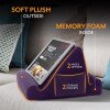 Brookstone – Soporte para tablet de escritorio de espuma viscoelástica, para teléfonos, iPads, lectores de libros electrónicos, 2 ángulos de visión, 2 bolsillos laterales para accesorios, cojín para