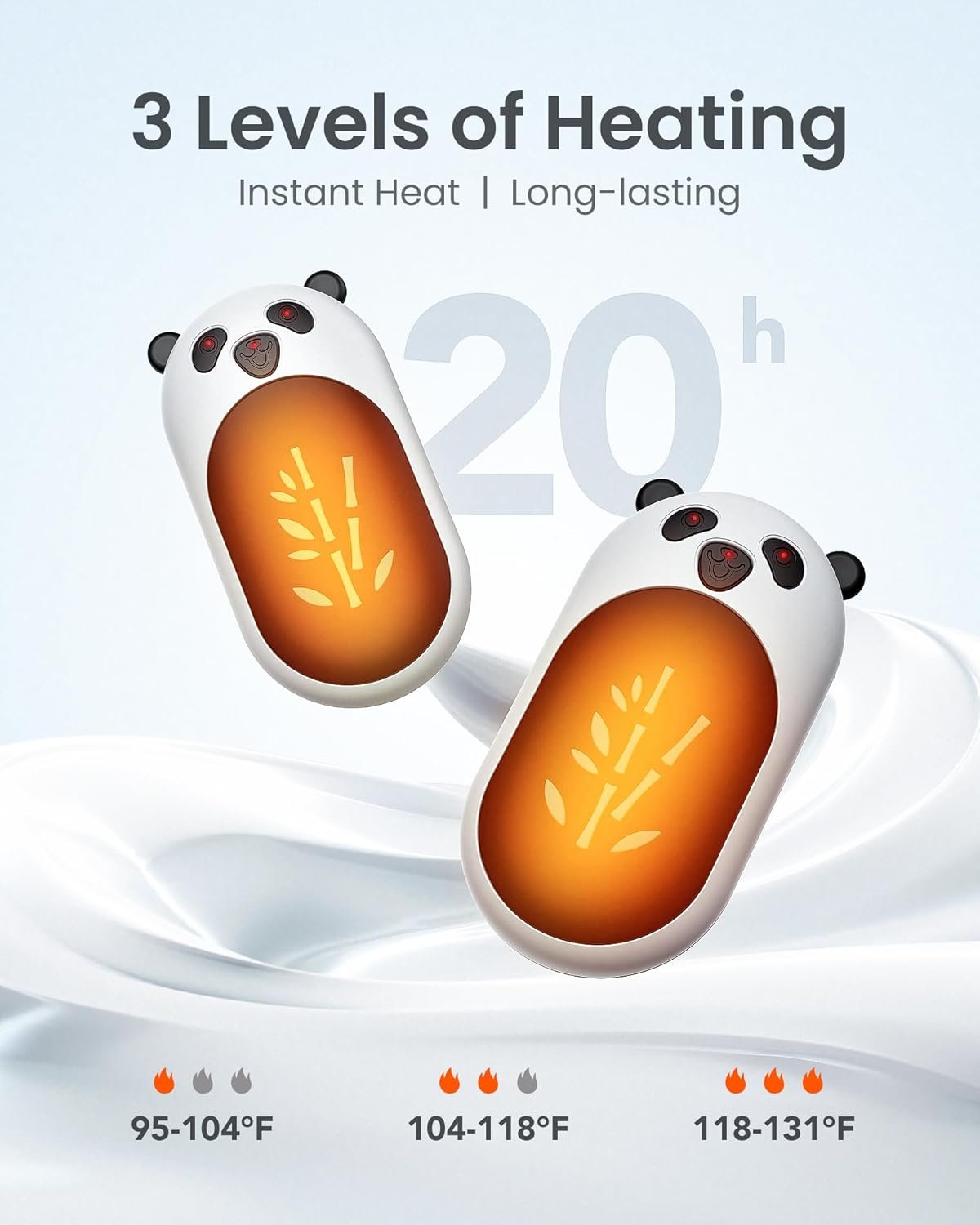 - 【20 horas x 4 de calor continuo】Se pueden seleccionar 3 niveles de calefacción con un simple botón. Calienta hasta 130°F en solo 2 segundos. La batería de 3000 mAh* 4 de capacidad puede durar hasta 20 horas x 4 de calor