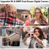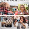 - Cámara digital de doble pantalla 5K mejorada: con alta resolución de 5K80MP, pantalla dual, enfoque automático, zoom digital de 18x, función de belleza facial y flash integrado