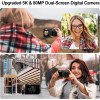 Cámara digital de doble pantalla 5K mejorada, cámara de fotografía de vlog de 80 MP para YouTube, campus, viajes, cámara compacta de apuntar y disparar para adolescentes y principiantes con enfoque