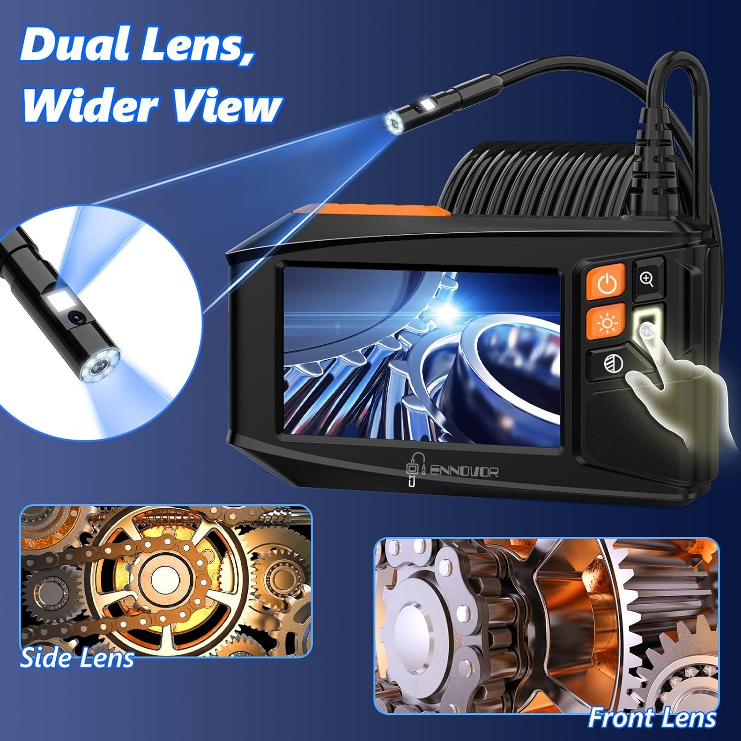- Lo que incluye: cámara de boroscopio de doble lente de 4.3 pulgadas con luz, cable semirrígido de 16.4 pies, cargador tipo C + 5 accesorios