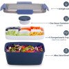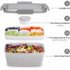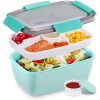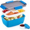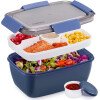 EXTRA-LARGE SALAD CONTAINER: Spacious 68 oz salad bowl to go. The top bento-style tray is divided into 5 compartments to keep your toppings separated and fresh while the middle compartment holds the included dressing container with a leak-proof lid.
