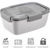 The airtight lid features a enhanced leak-proof design with secure locking clips and the inner seal keep air out, seal in freshness and help prevent food from shifting during transport.