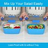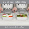 When you are ready to eat, remove the tray and add your toppings and dressing to the bowl, replace the lid and shake to mix up your salad without worry of leaks.