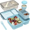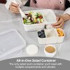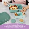 - Contenedor de almuerzo de ensalada para adultos y caja Bento todo en uno: lleve ensaladas saludables y otras comidas nutritivas sobre la marcha con este juego todo en uno, que cuenta con un tazón grande de 5.1 tazas y un compartimento de 2.7 tazas, una bandeja extraíble de 3 compartimentos para fijaciones, un recipiente de salsa a prueba de fugas e incluso un tenedor reutilizable
