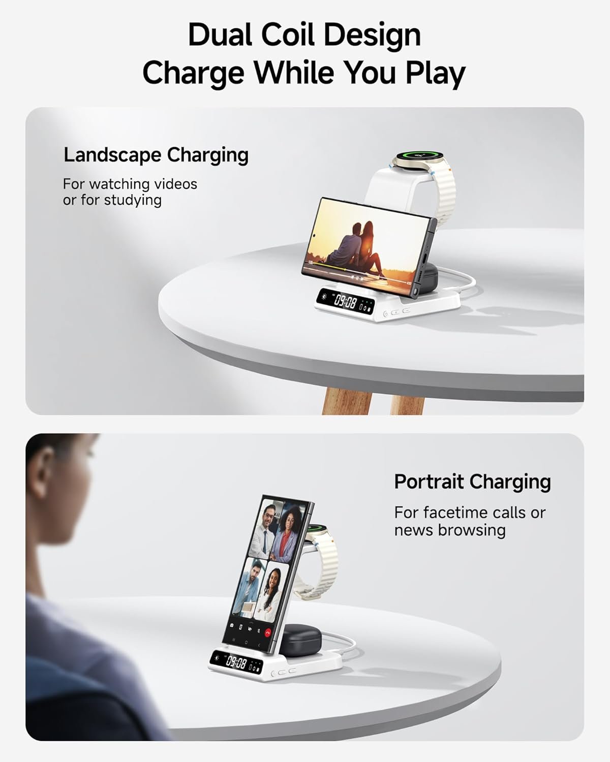 - 4. Para evitar el sobrecalentamiento, alinea el teléfono y el reloj con las bobinas de carga.
