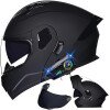 - 【Auriculares Bluetooth】Este casco de motocicleta con Bluetooth cuenta con tecnología Bluetooth de alta calidad, proporcionando calidad de sonido envolvente estéreo con graves, respuesta automática, reproducción de canciones y función de reducción de ruido durante las llamadas. Transmisión de señal súper fuerte, consumo de energía ultra bajo, soporta todos los dispositivos Bluetooth y puede mostrar directamente el nivel de batería en el teléfono.