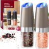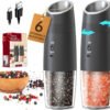 - Funcionamiento automático: el juego eléctrico de molinillo de sal y pimienta por gravedad utiliza tecnología avanzada para un fácil funcionamiento con una sola mano. Simplemente gira el molinillo para disfrutar de especias recién molidas sin la necesidad de moler manual o presionar botones. Este molinillo de sal y pimienta es un buen ayudante para cocinas, restaurantes, fiestas y picnics al aire libre